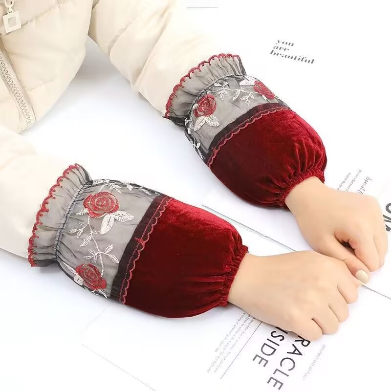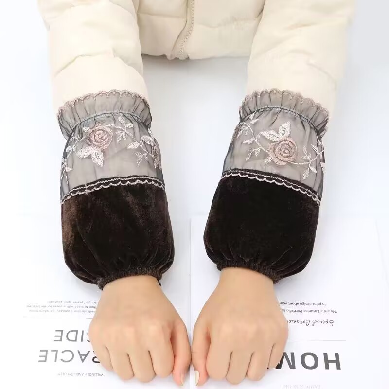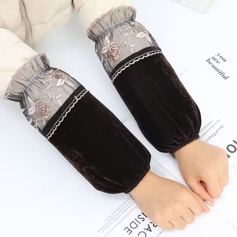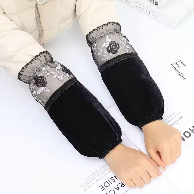 2025短款金丝绒袖套女蕾丝袖套冬季防污家务成人护袖学生防脏套袖