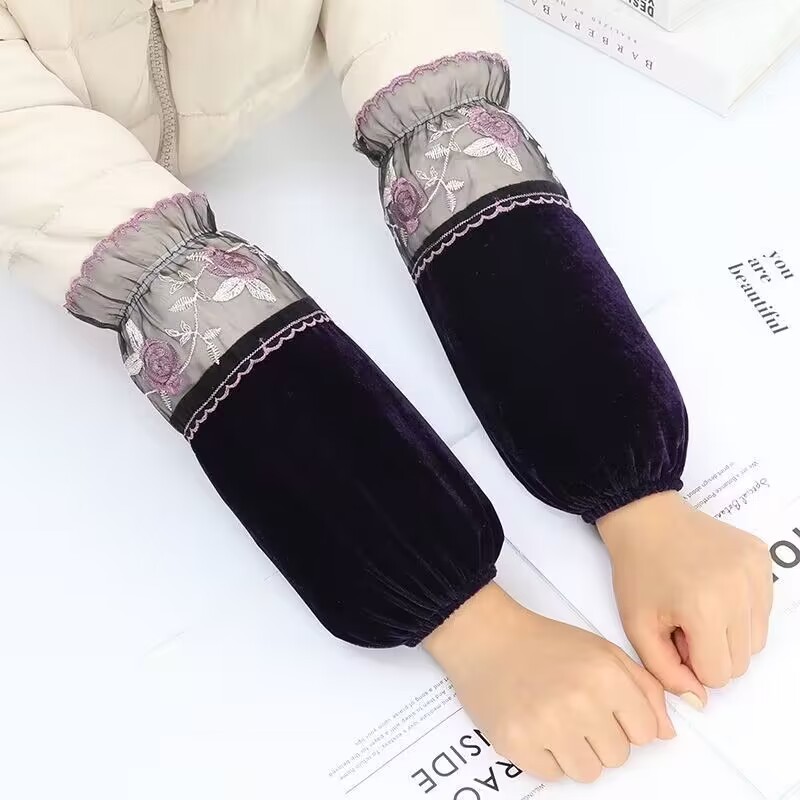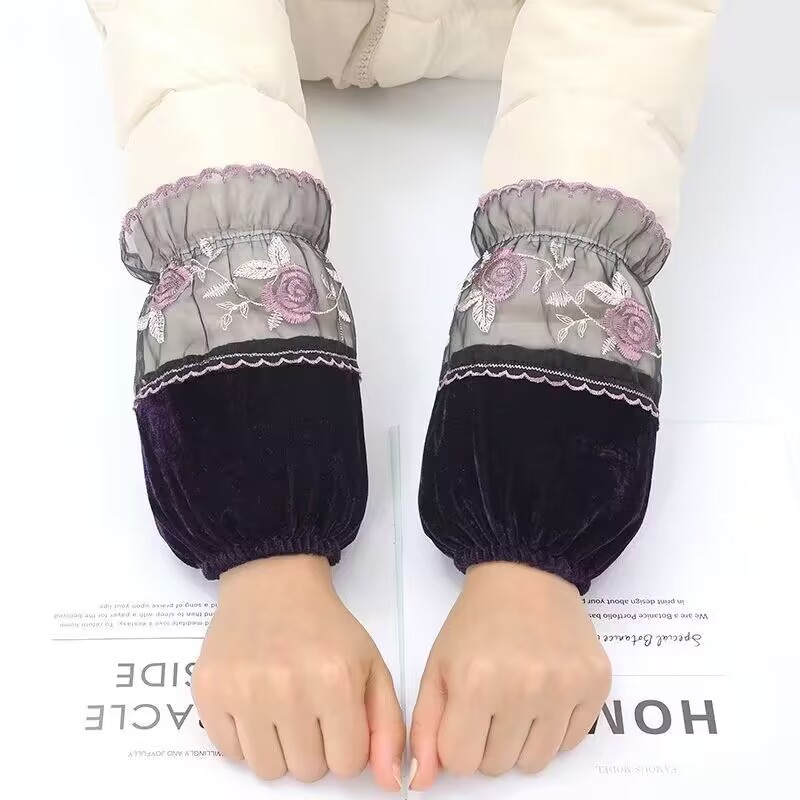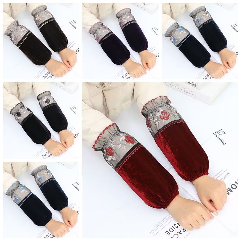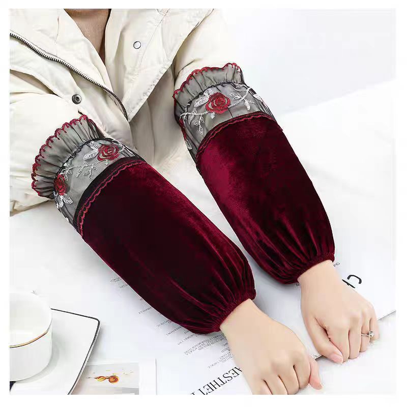 ベルベットの袖カバーの女性の長いタイプの女性の冬の仕事のレースカバーの袖の女性の台所の袖カバーの大人の袖の卸売り