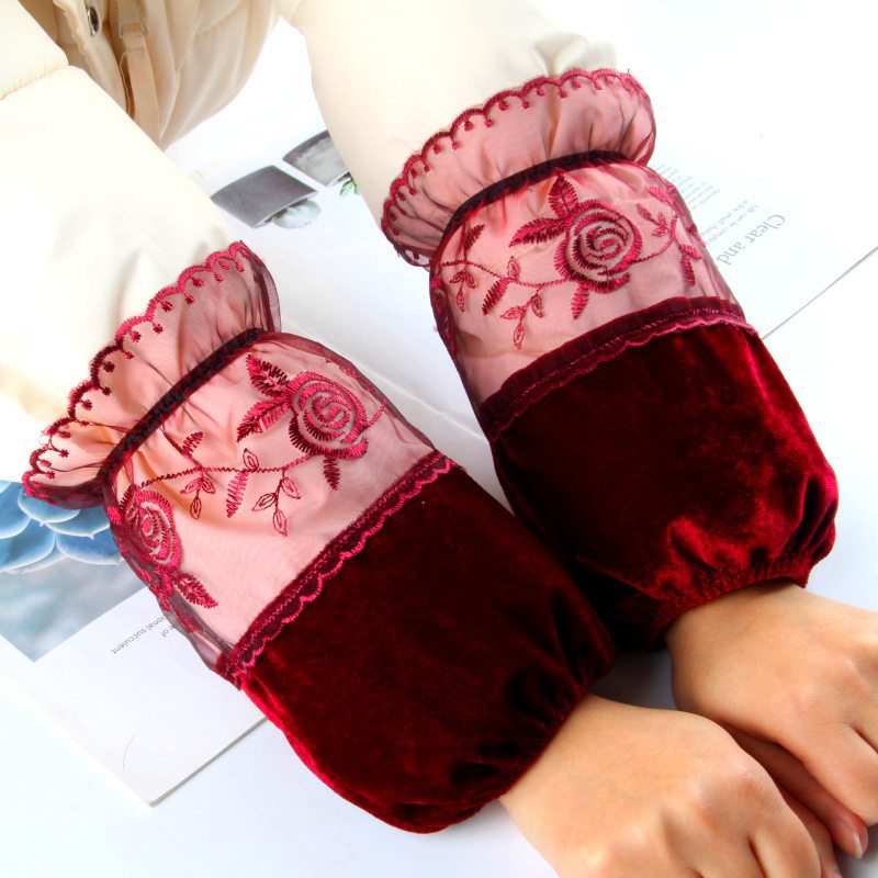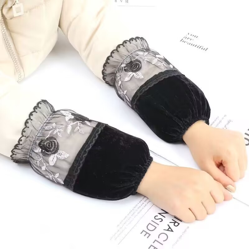 二重網糸レース袖カバー女性秋冬汚れ防止カバー袖成人学生袖筒家事ダウンジャケット袖保護