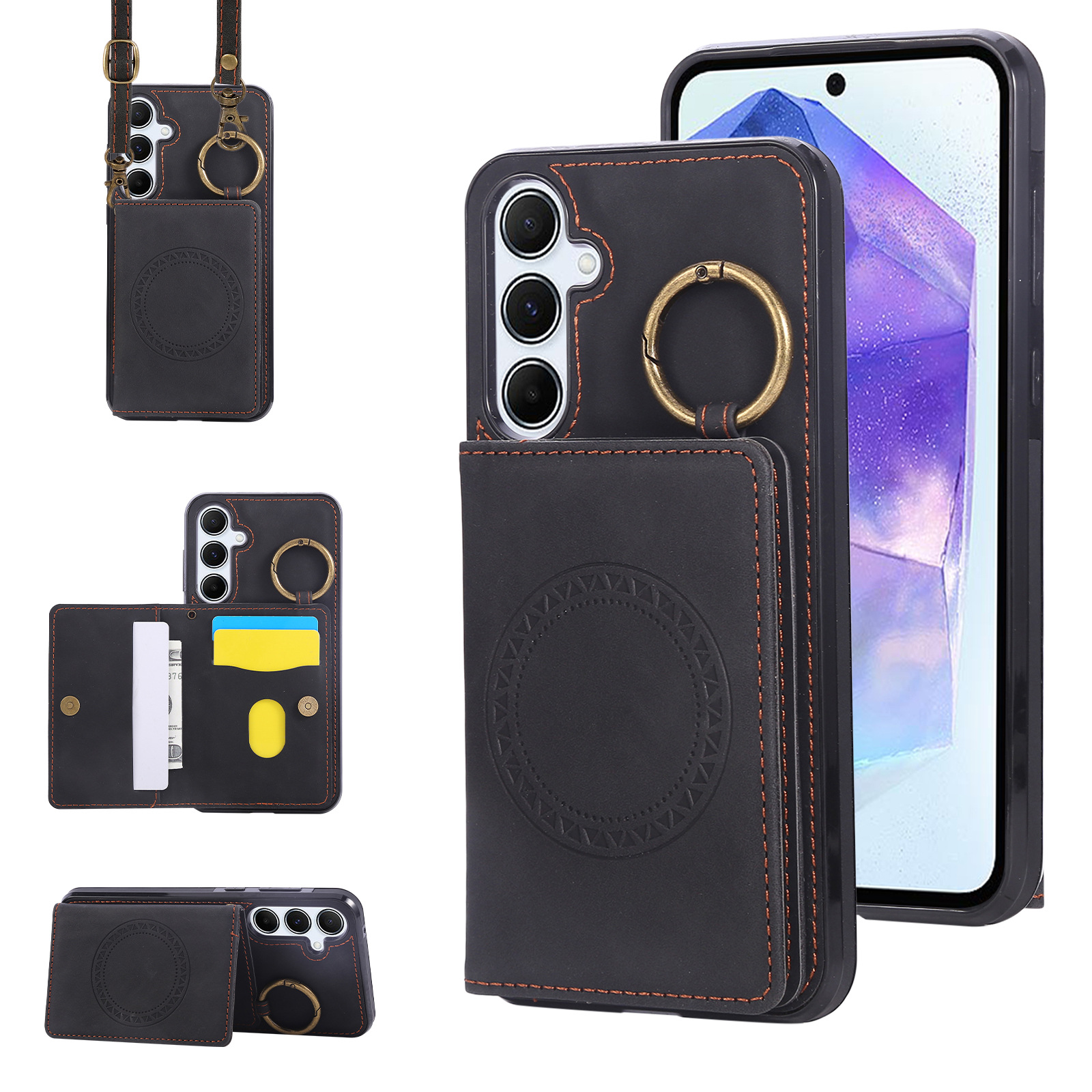 Samsung A56 カード携帯電話ケース S25 磁気カードホルダー S23 携帯電話レザーケース クロスボディ携帯電話ケース 落下防止に適しています。