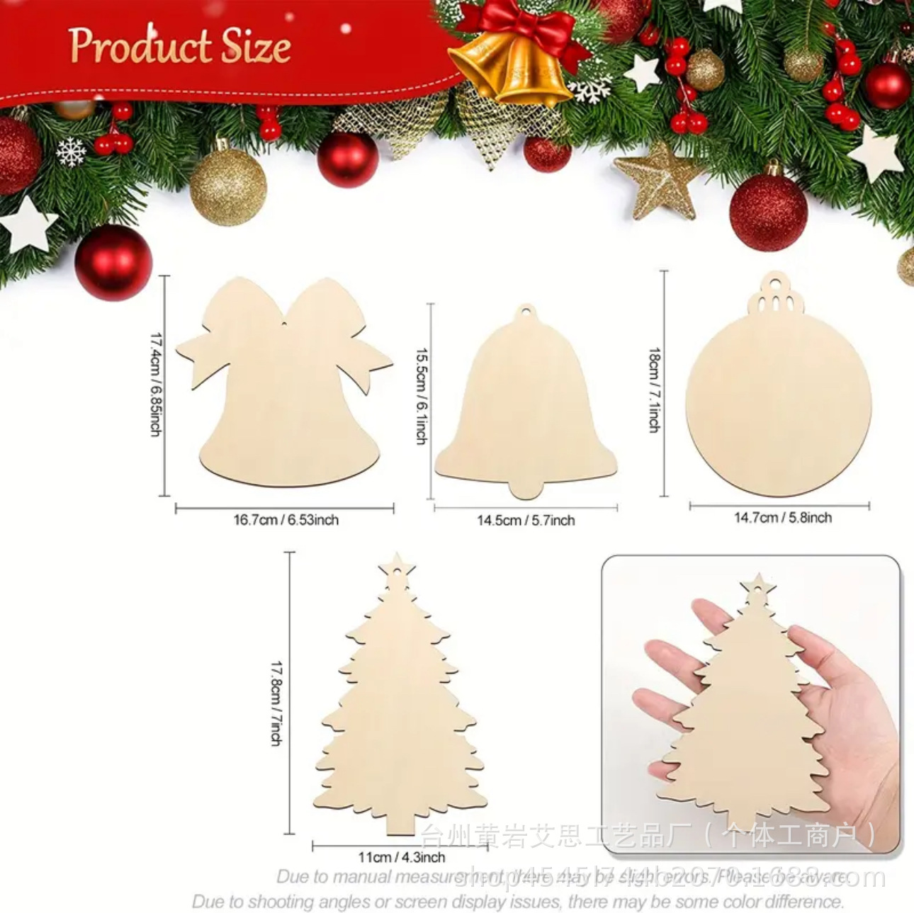木製クリスマス装飾塗装木製スライスDIY空白未完成の五芒星クリスマスツリー装飾品ストラップ