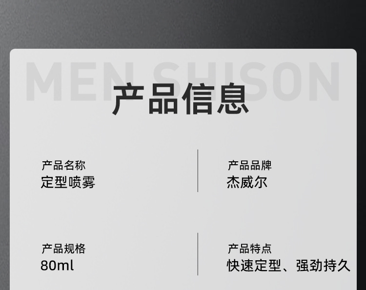 ジェウェル男性力塑持続型スプレー80ml強力スタイリング粘着剤保湿立体ふんわりヘアゴム