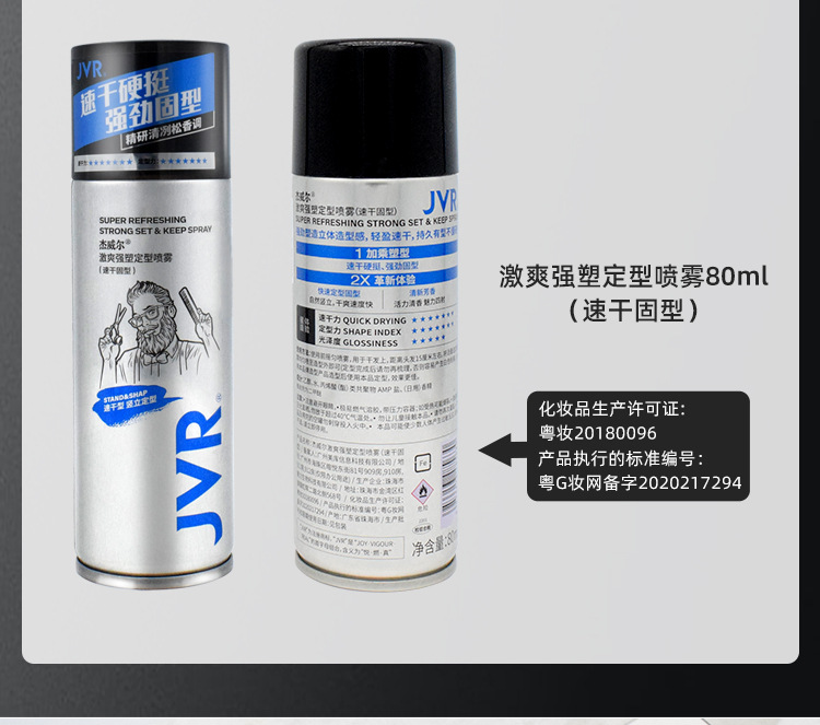 Jvrジェウェル激爽強塑定型スプレー80ml男性自然ふんわりした髪の形のヘアゴムの香り