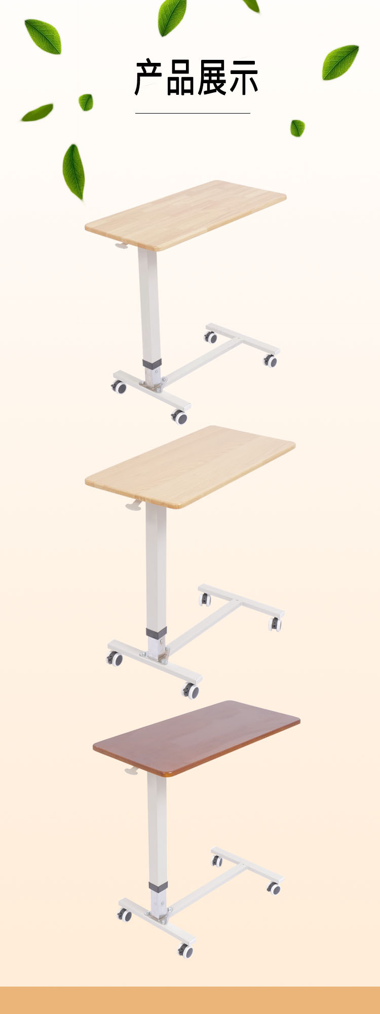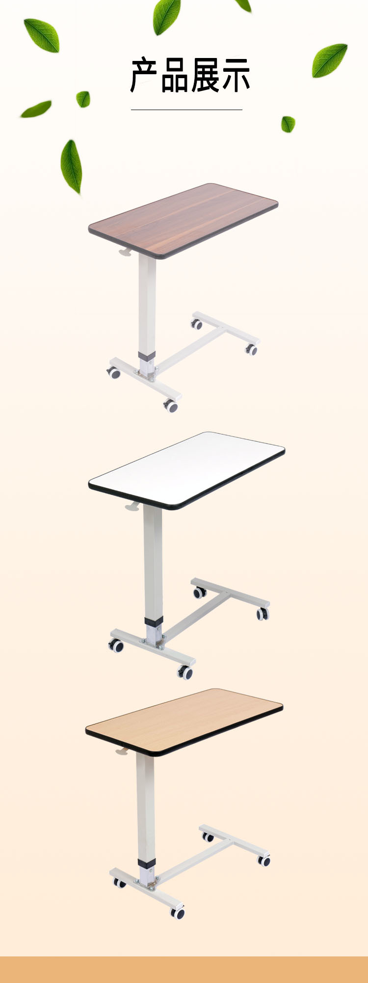 升降桌 老人多功能移动护理餐桌病房床边桌 ABS懒人气压移动餐桌