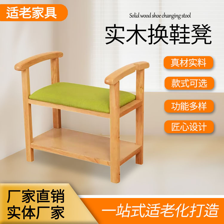 高齢者マンション老人ホームの家具実木手すり付き靴交換腰掛け現代のシンプルな収納は靴交換腰掛けに座ることができる
