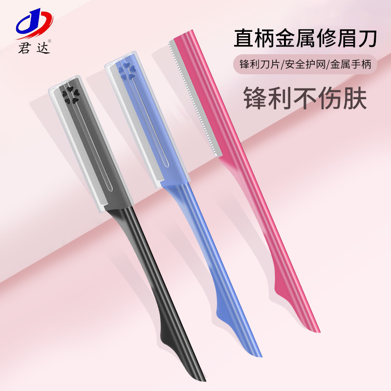 新款修眉刀不锈钢直柄锋利刀片微距防护网专用刮眉刀美妆工具