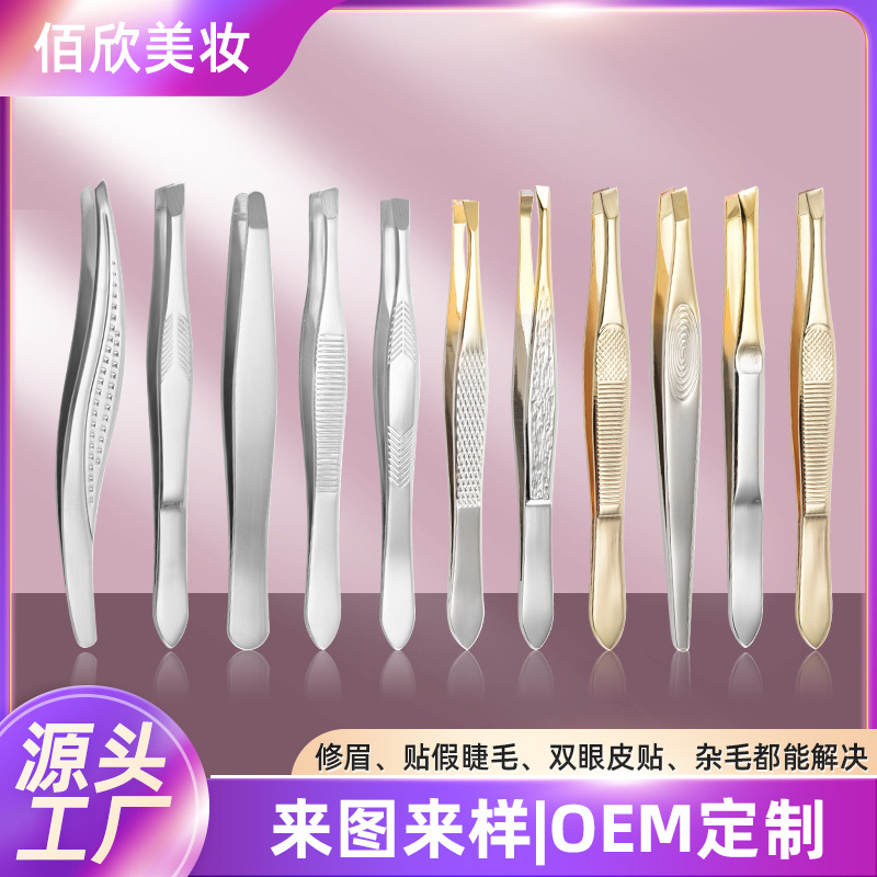 镊子拔眉毛美容工具眉毛夹不锈钢眉夹贴双眼皮贴镊子斜口眉钳批发