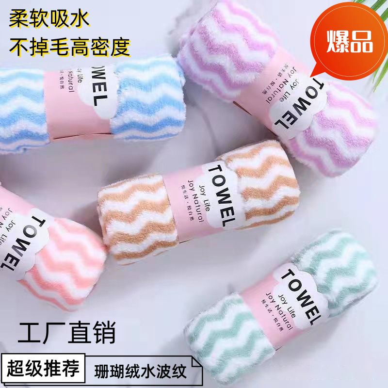 コーラルベルベットキャンディストリップタオル 子供大人兼用 厚手 柔らかい 両面吸水 フェイスタオル 工場卸売タオル バスタオル