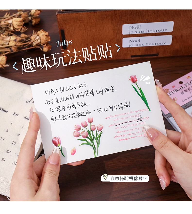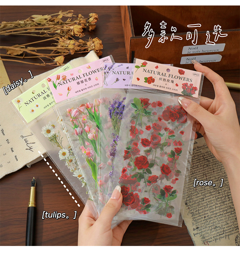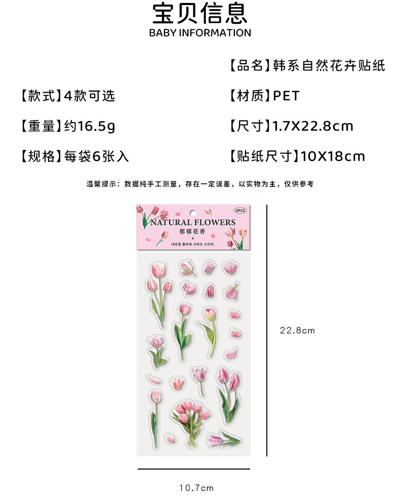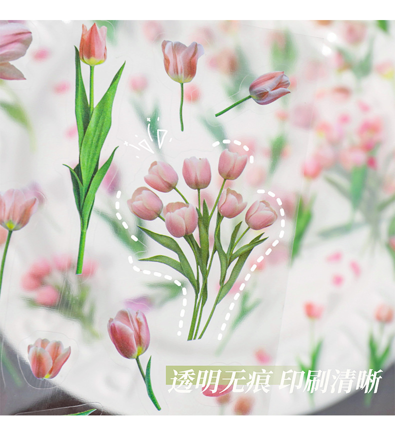 クリエイティブ花卉シールチューリップ手帳シールPETレトロ植物貼り画造景底装飾素材貼り