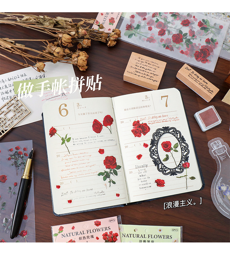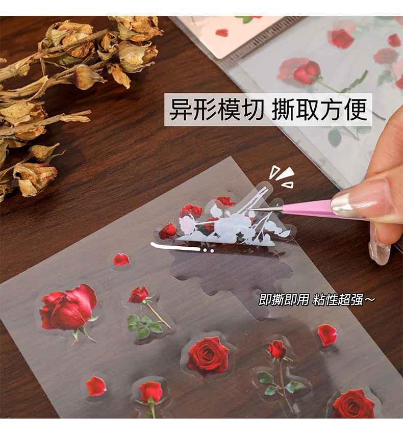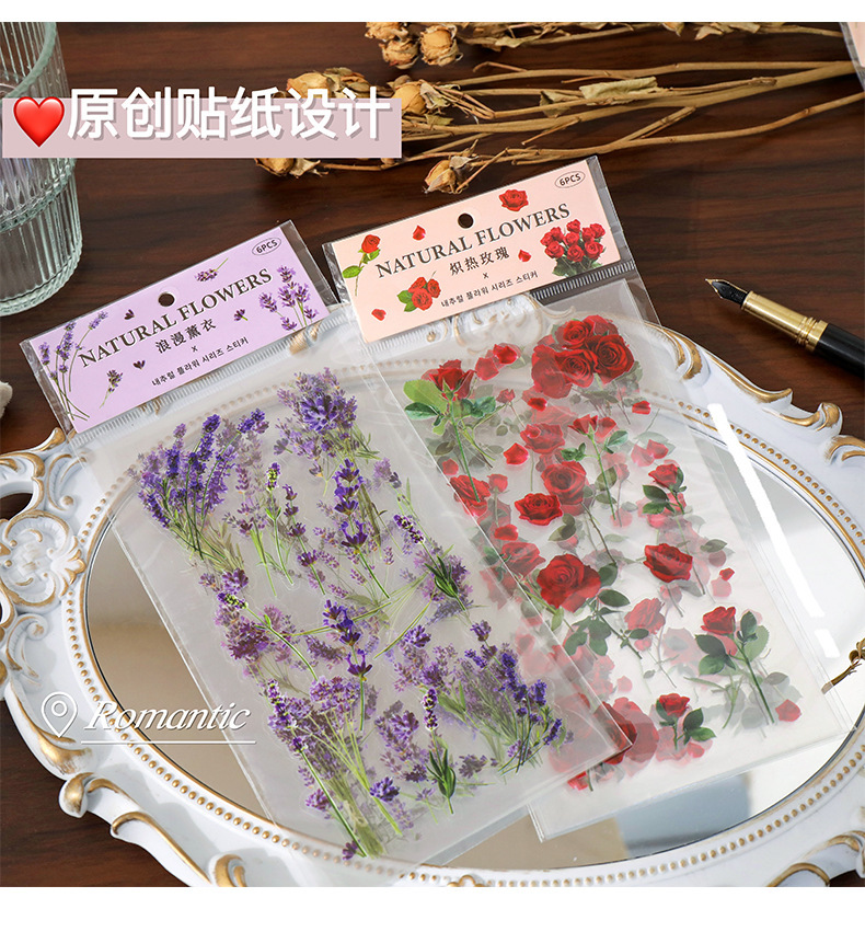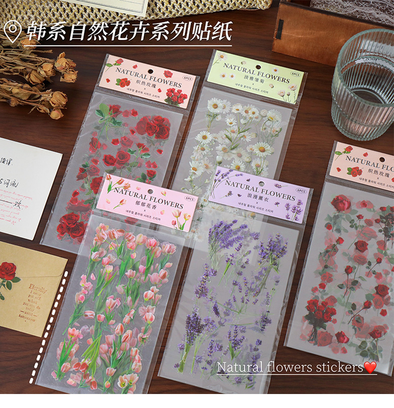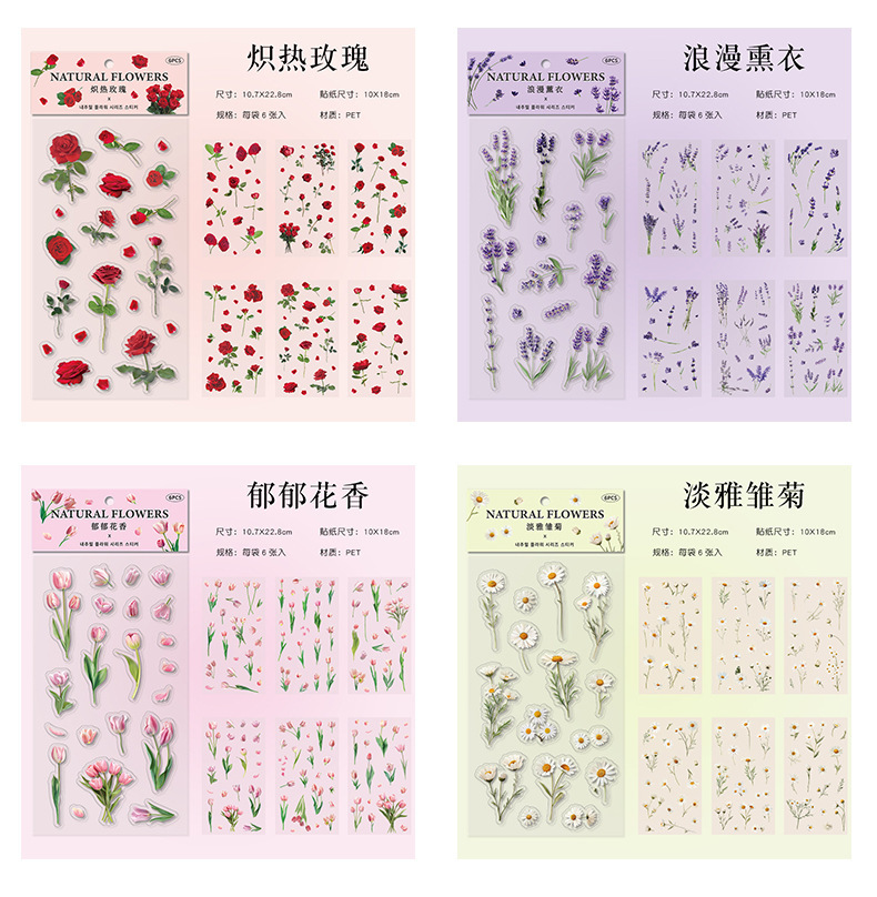 クリエイティブ花卉シールチューリップ手帳シールPETレトロ植物貼り画造景底装飾素材貼り