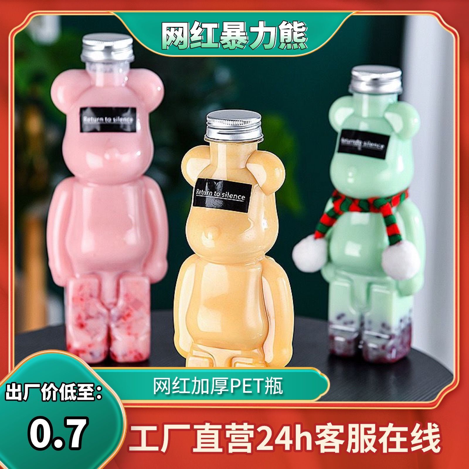 インターネット有名人暴力クマミルクティーカップ商業かわいいクマミルクティーボトル使い捨てクマ特殊形状透明プラスチックボトル