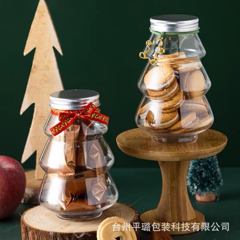 現物500mlクリスマスツリー瓶petビスケットキャンディー包装瓶プラスチック哺乳茶瓶