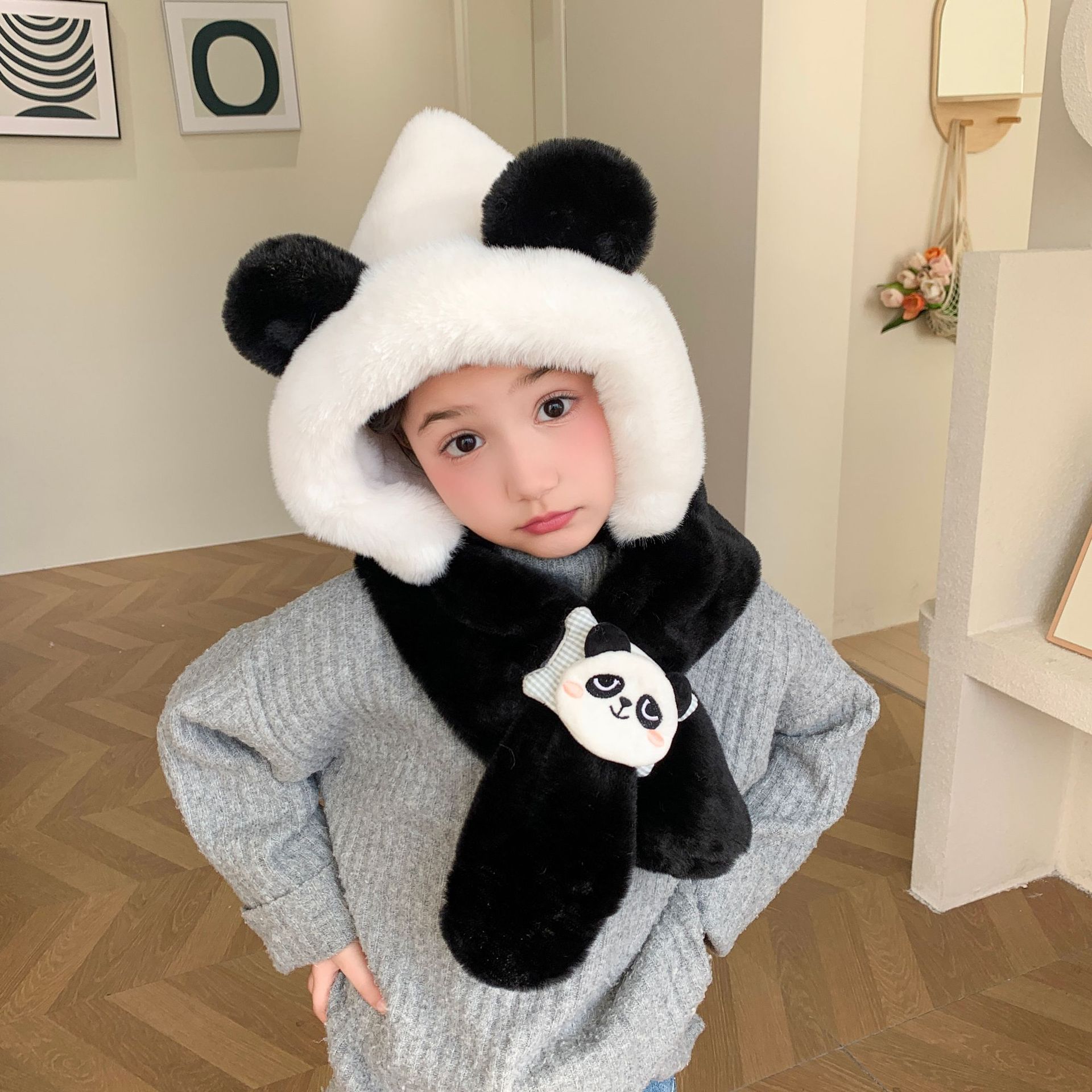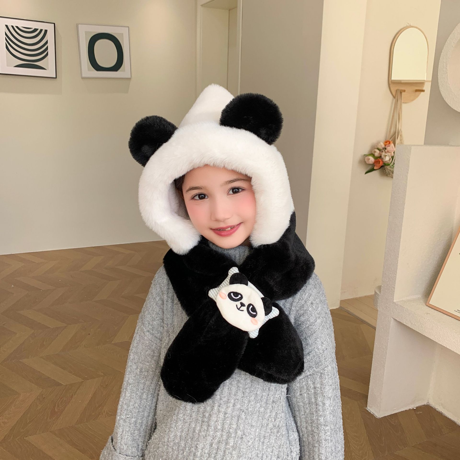 漫画オリジナル睡眠シリーズ子供2点セットかわいいかわいいパンダのカピバラウサギのマフラー帽子