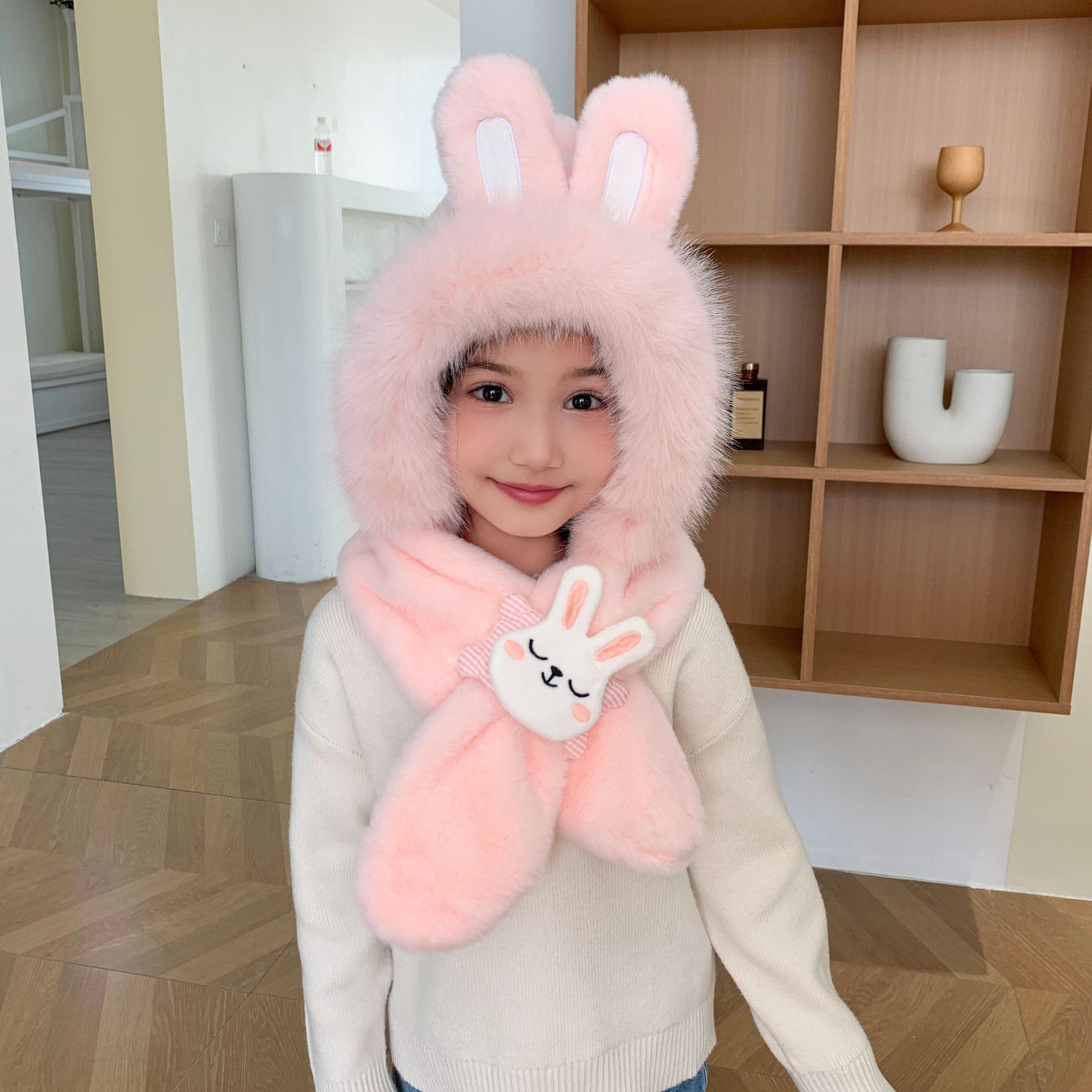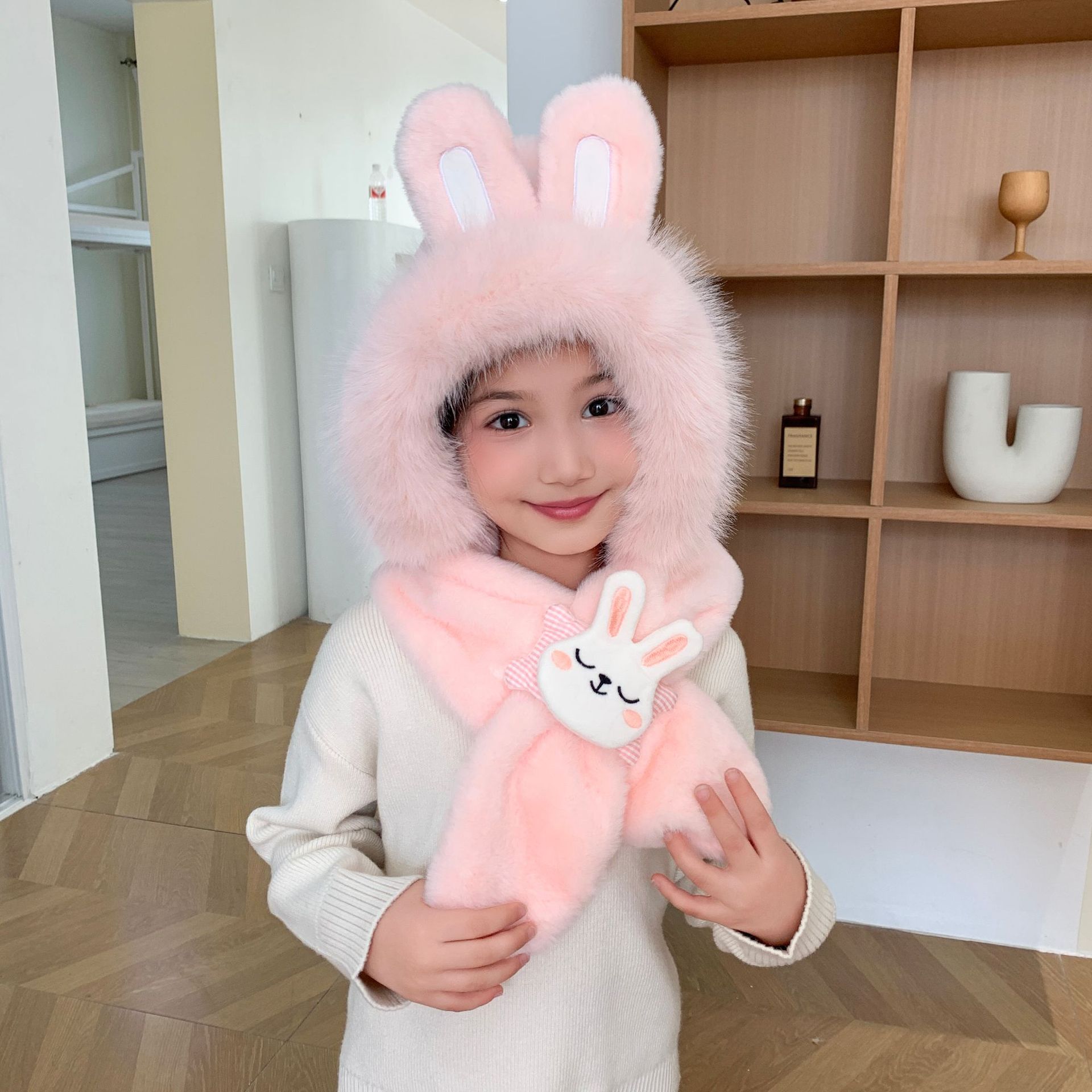 2025 新しい子供のスカーフ秋と冬ぬいぐるみ親子暖かくてかわいい肥厚漫画模造ウサギの毛皮のベビースカーフ