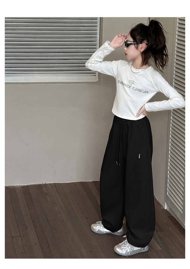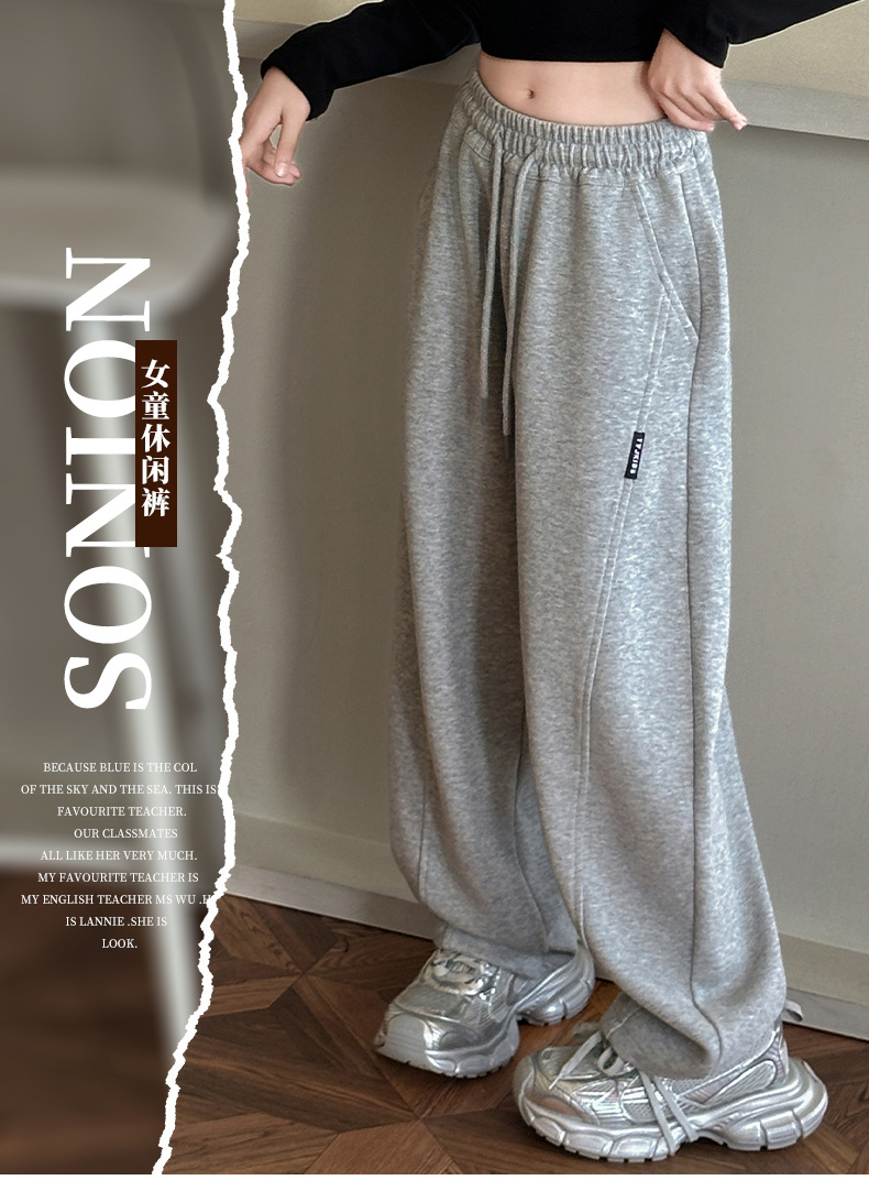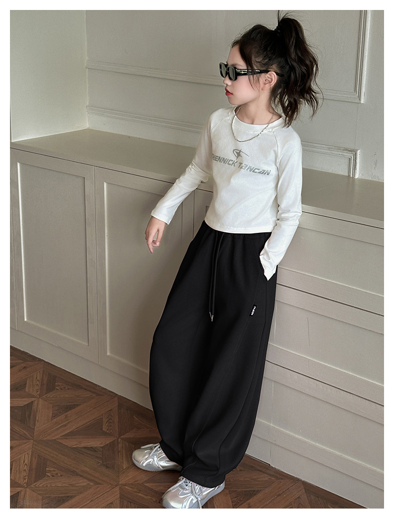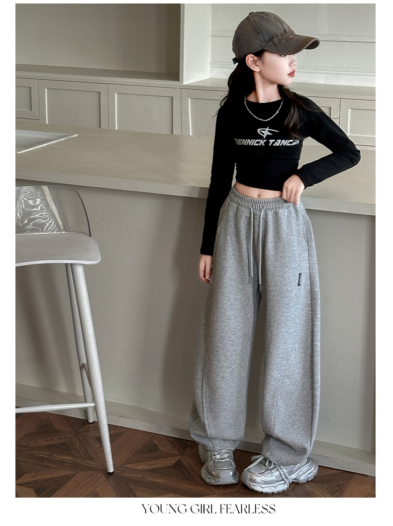 春秋の女の子用スポーツパンツ、ワイドレッグ、子供服、中高生向け、ストレートカジュアルパンツ、新作、女の子、中学生、秋冬