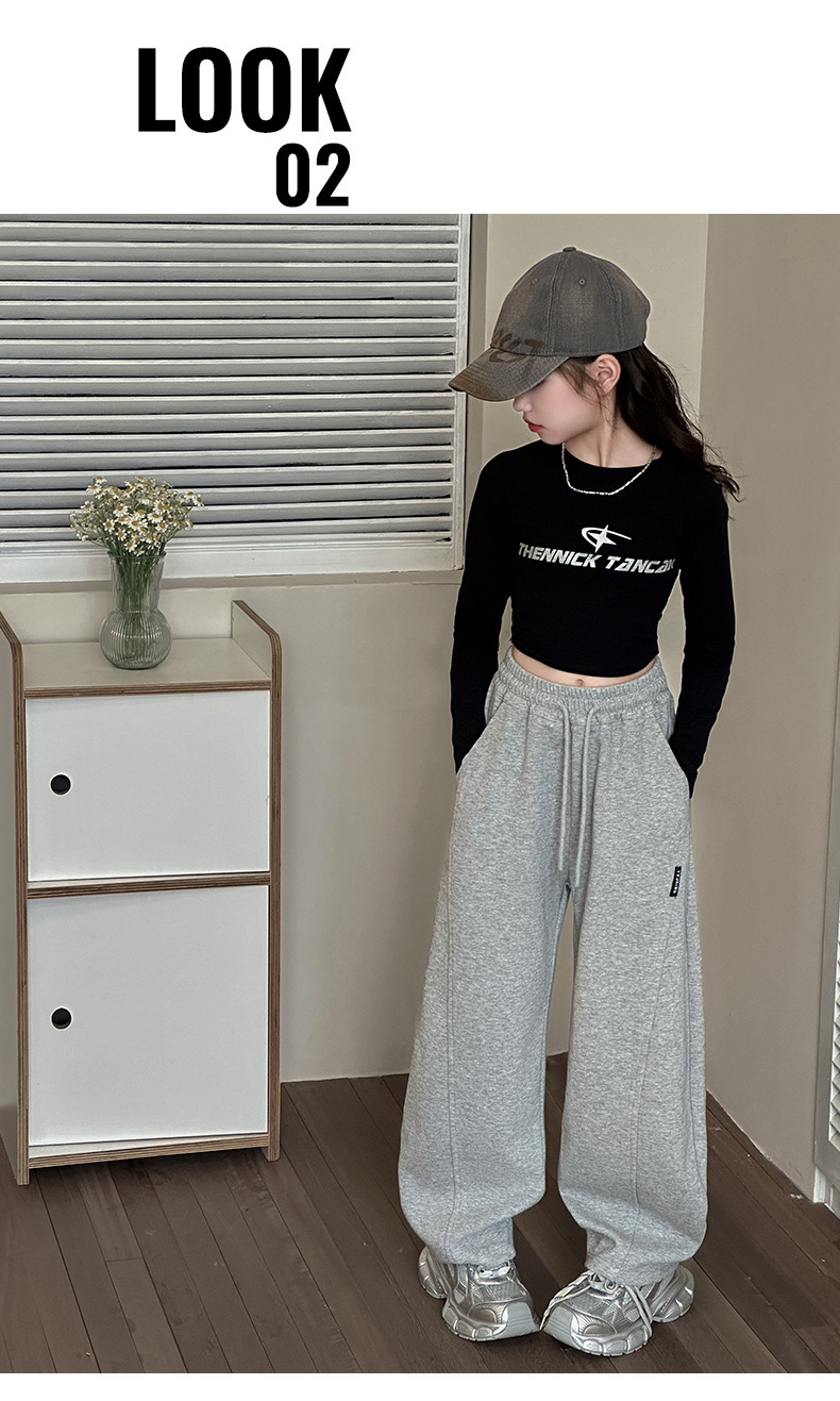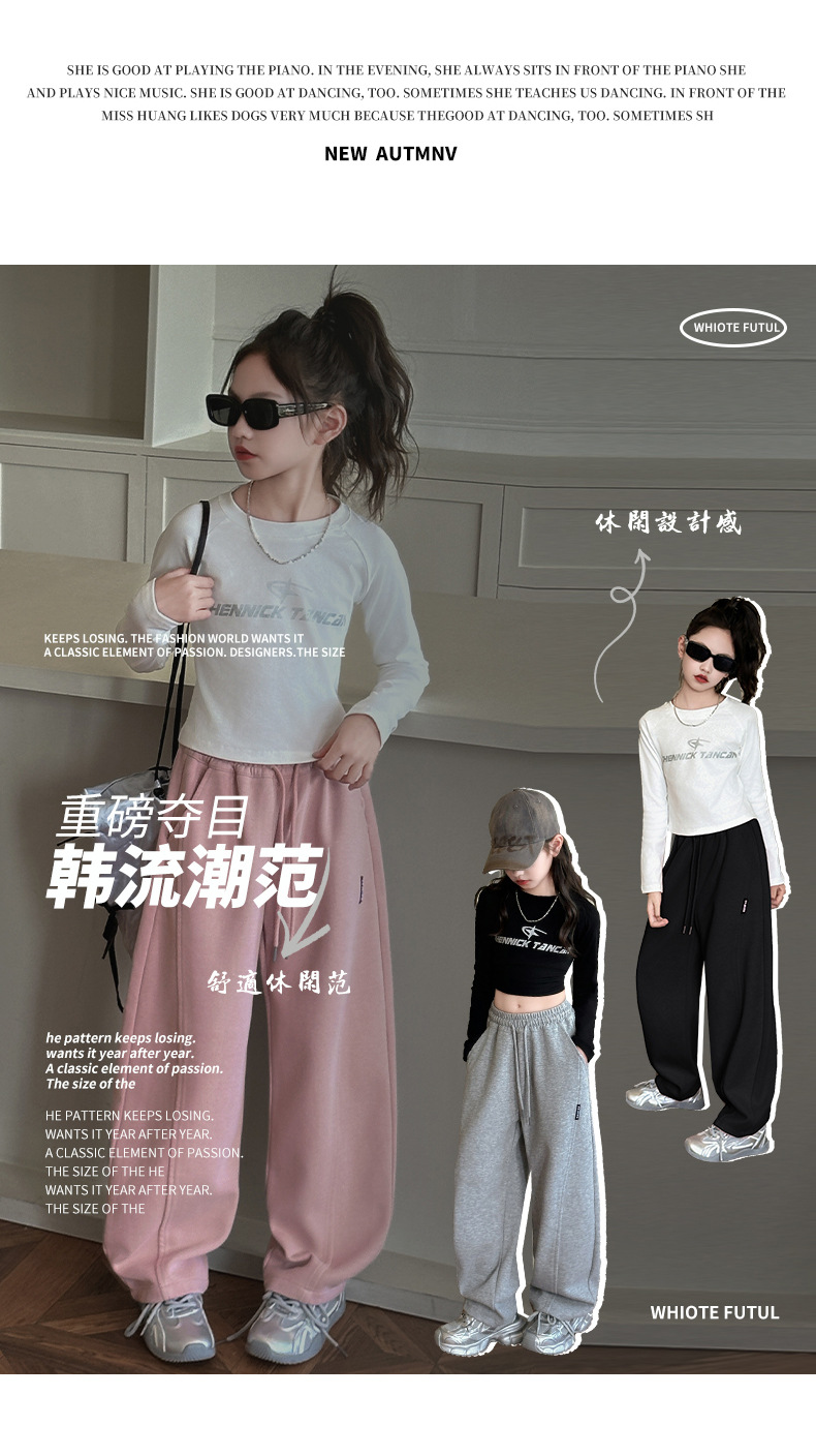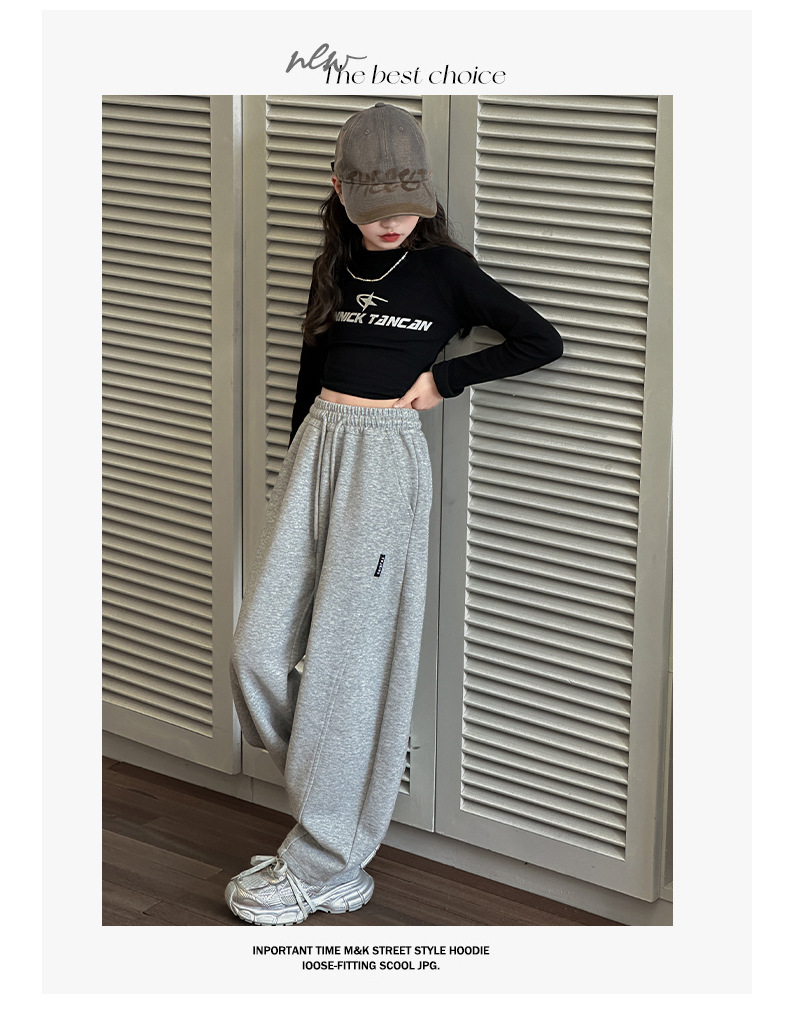 春秋の女の子用スポーツパンツ、ワイドレッグ、子供服、中高生向け、ストレートカジュアルパンツ、新作、女の子、中学生、秋冬