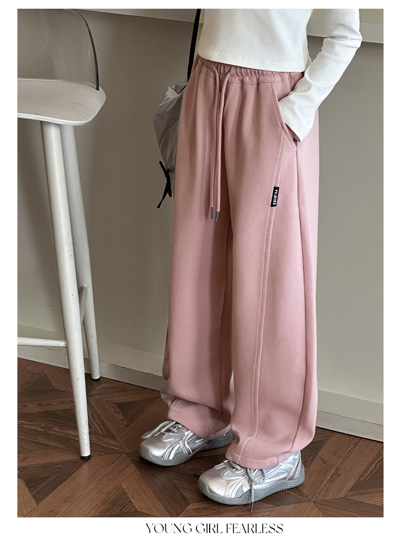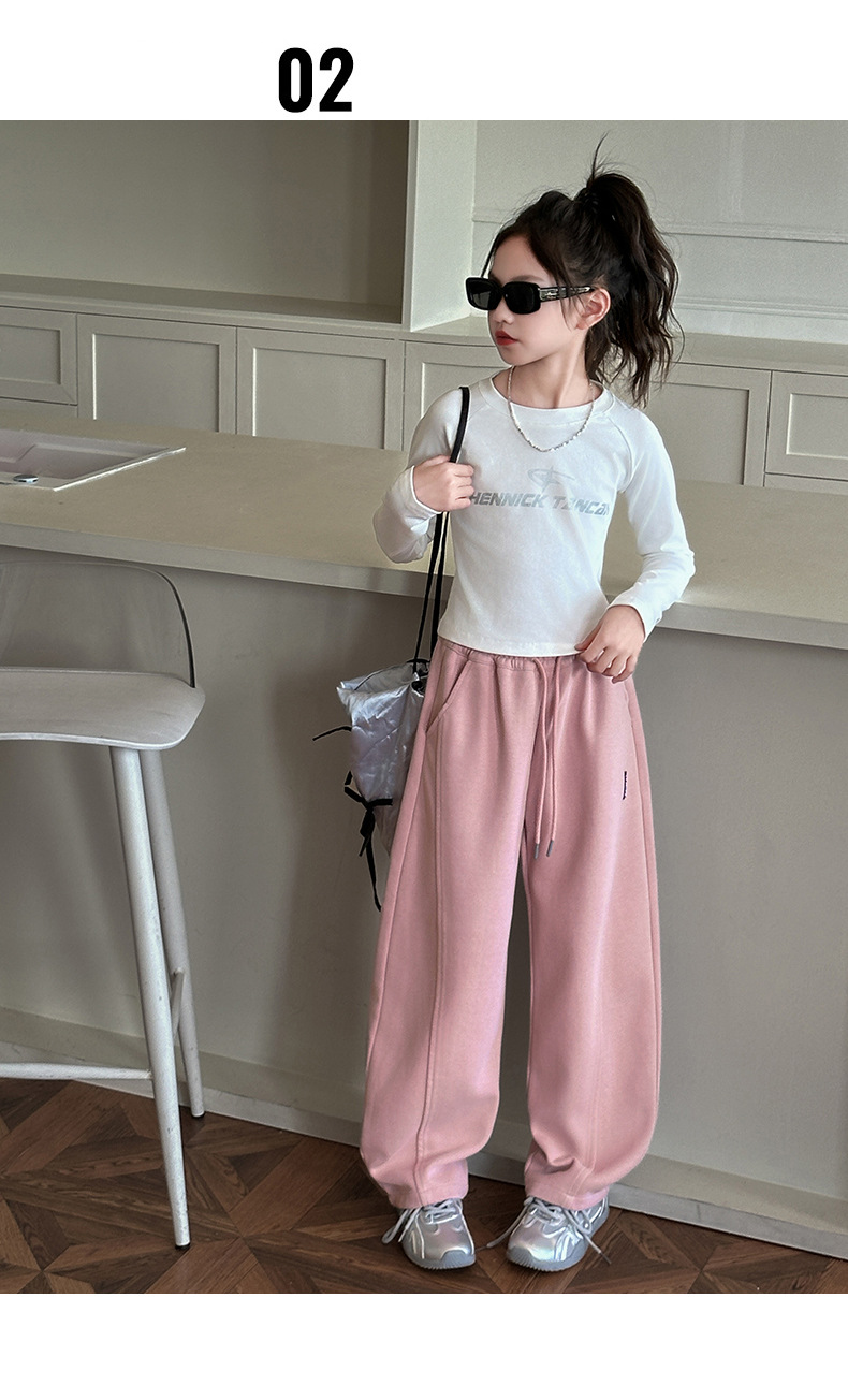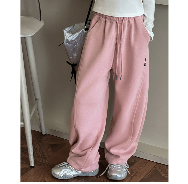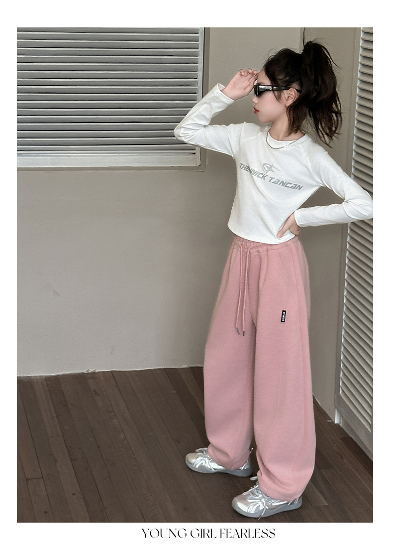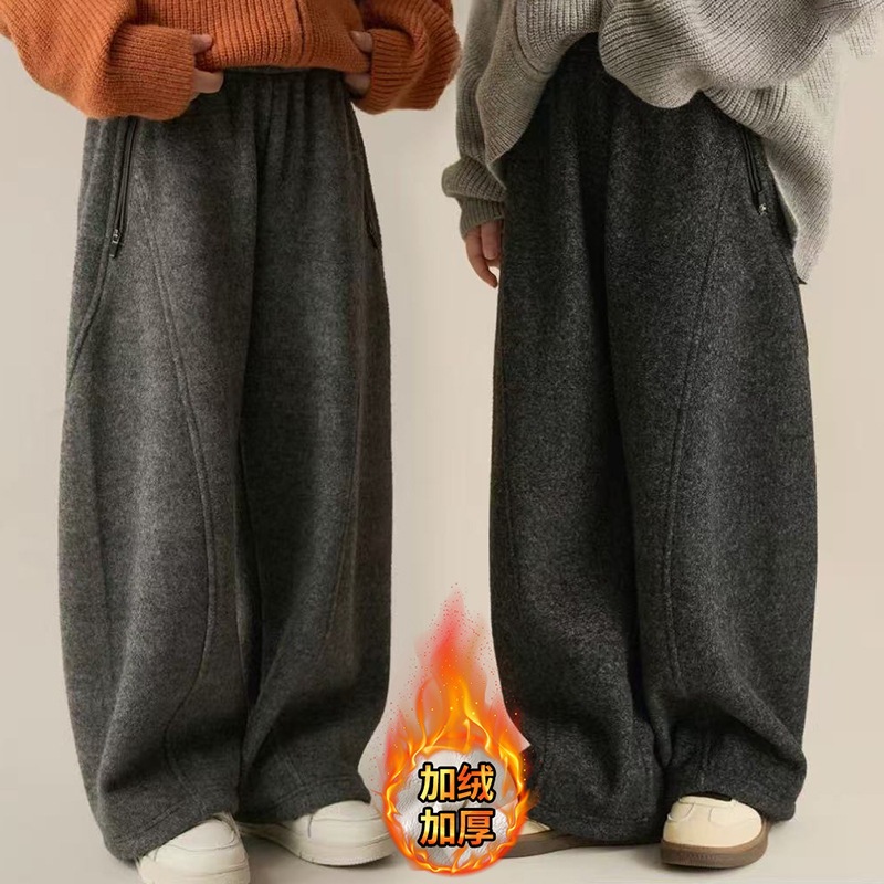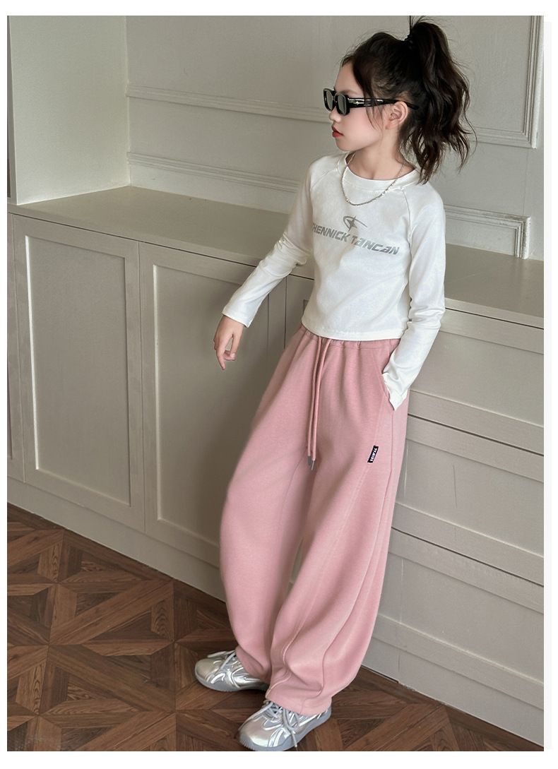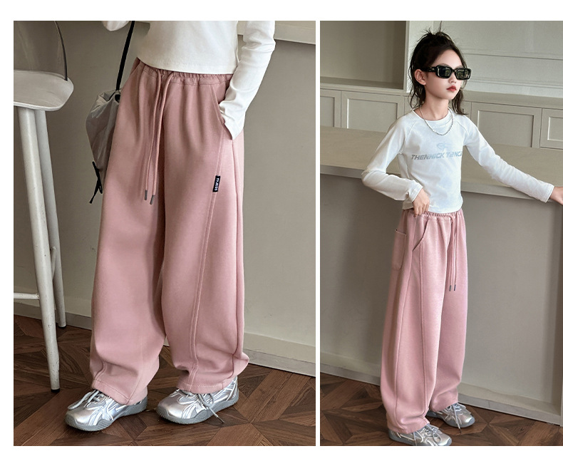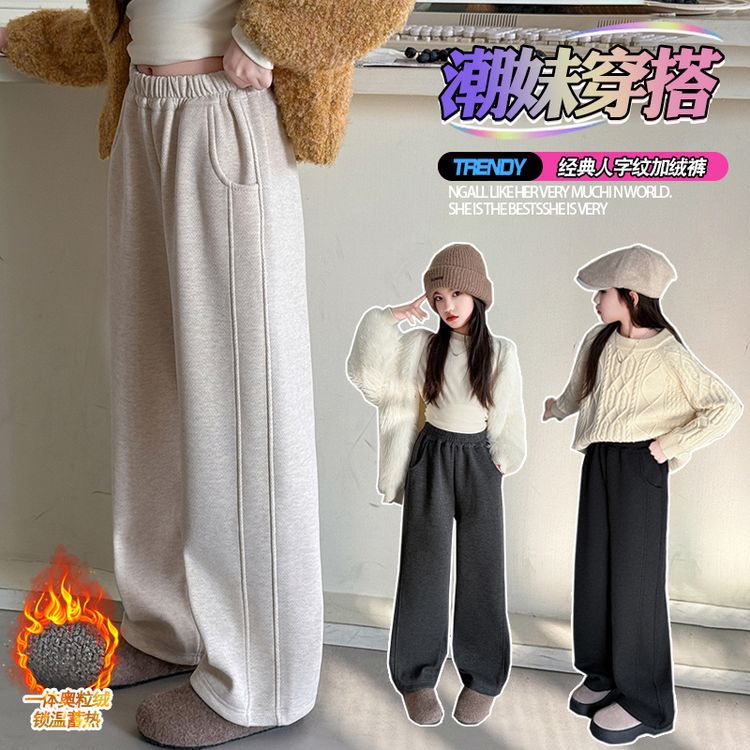 女の子カジュアルパンツ2025秋冬新作、中型および大型子供用ファッショナブルなルーズバナナパンツ、ベルベットストレートパンツ、ワイドレッグパンツ
