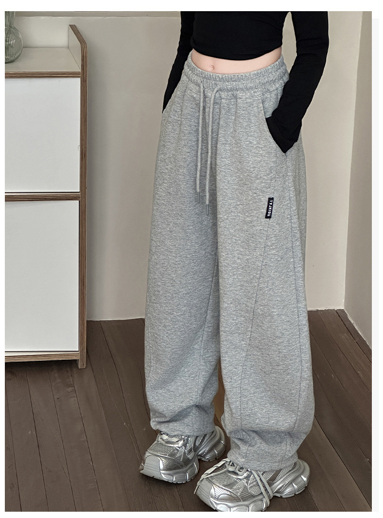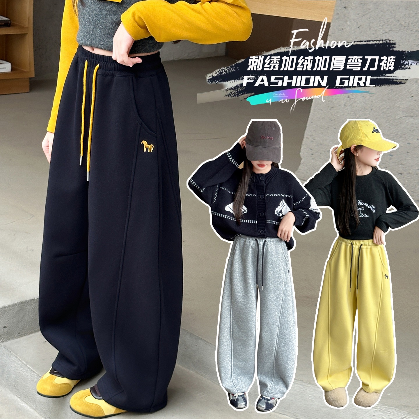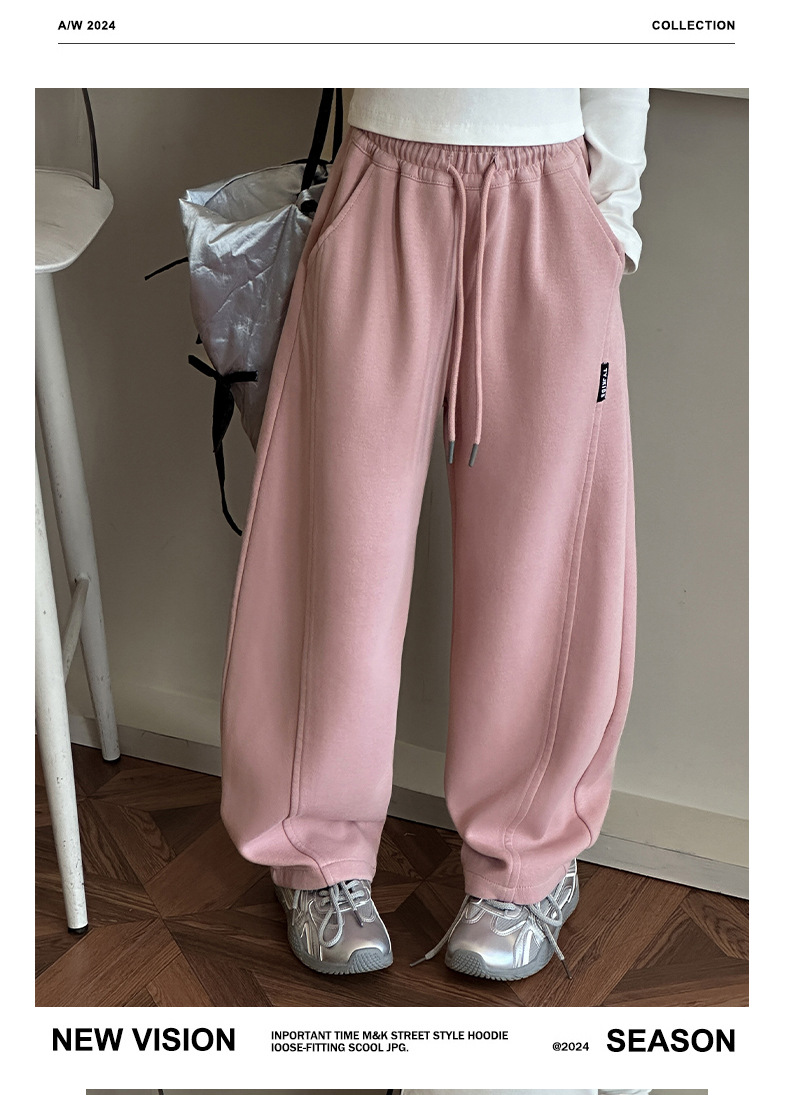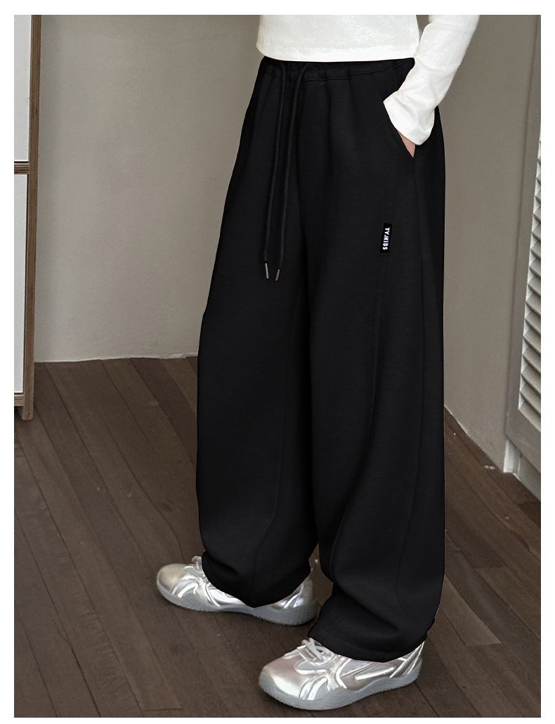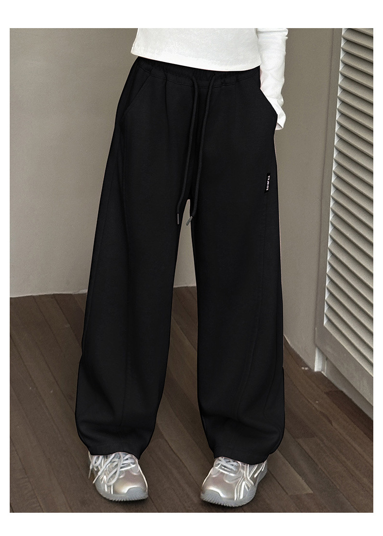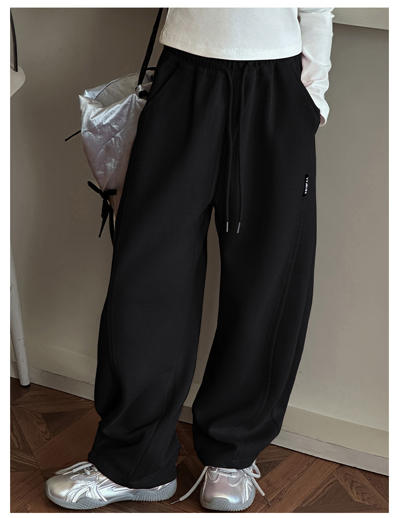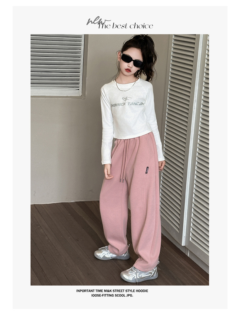 女の子カジュアルパンツ2025秋冬新作、中型および大型子供用ファッショナブルなルーズバナナパンツ、ベルベットストレートパンツ、ワイドレッグパンツ