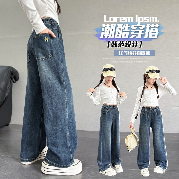 外国貿易の女の子のデニムの背もたれのズボンの秋のズボンの2022の新型のファッションの韓国版の子供の春秋のタイプのカジュアルなズボン