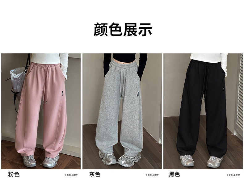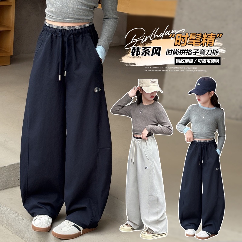 女童卫裤2025秋季时尚宽松直筒裤休闲长裤鱼骨纹韩系松弛感弯刀裤