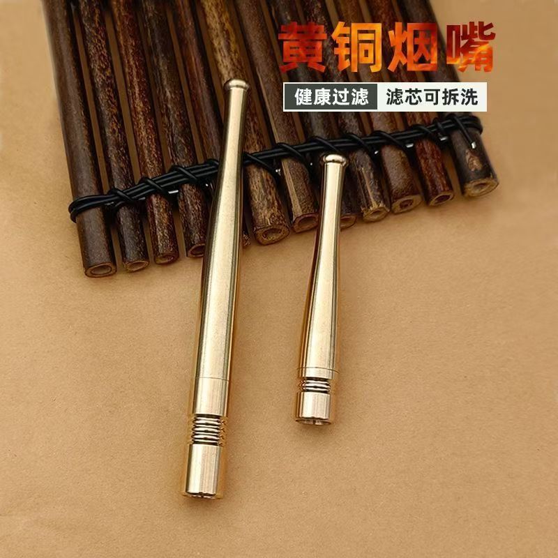 純真鍮のタバコホルダー、短い、ポータブル、伝統的な昔ながらの銅タバコホルダー、フィルターコア付き、乾式タバコ、デュアルユース、取り外し可能、卸売