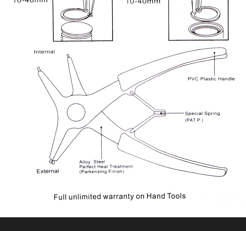 卸売用スプリングクランププライヤー、内外両用スプリングクランププライヤー、スプリング止め輪取り外し工具、拡張プライヤー、スプリングクランププライヤー卸売