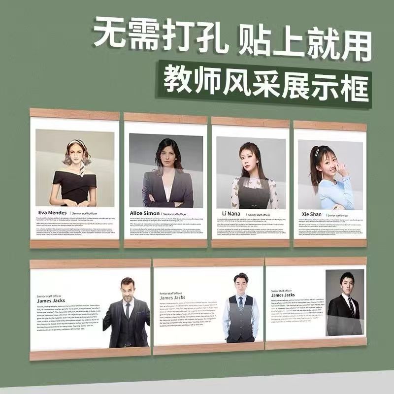教師プロフィールアクリルフォトフレーム壁掛け従業員スタイルディスプレイ壁コーチ画像壁写真壁パンチなし