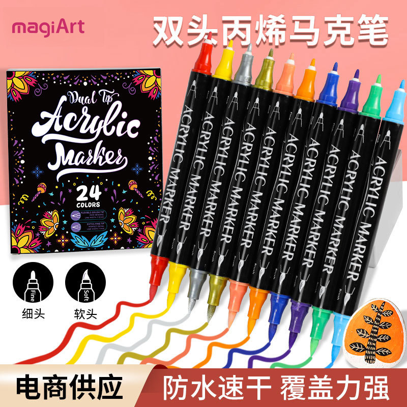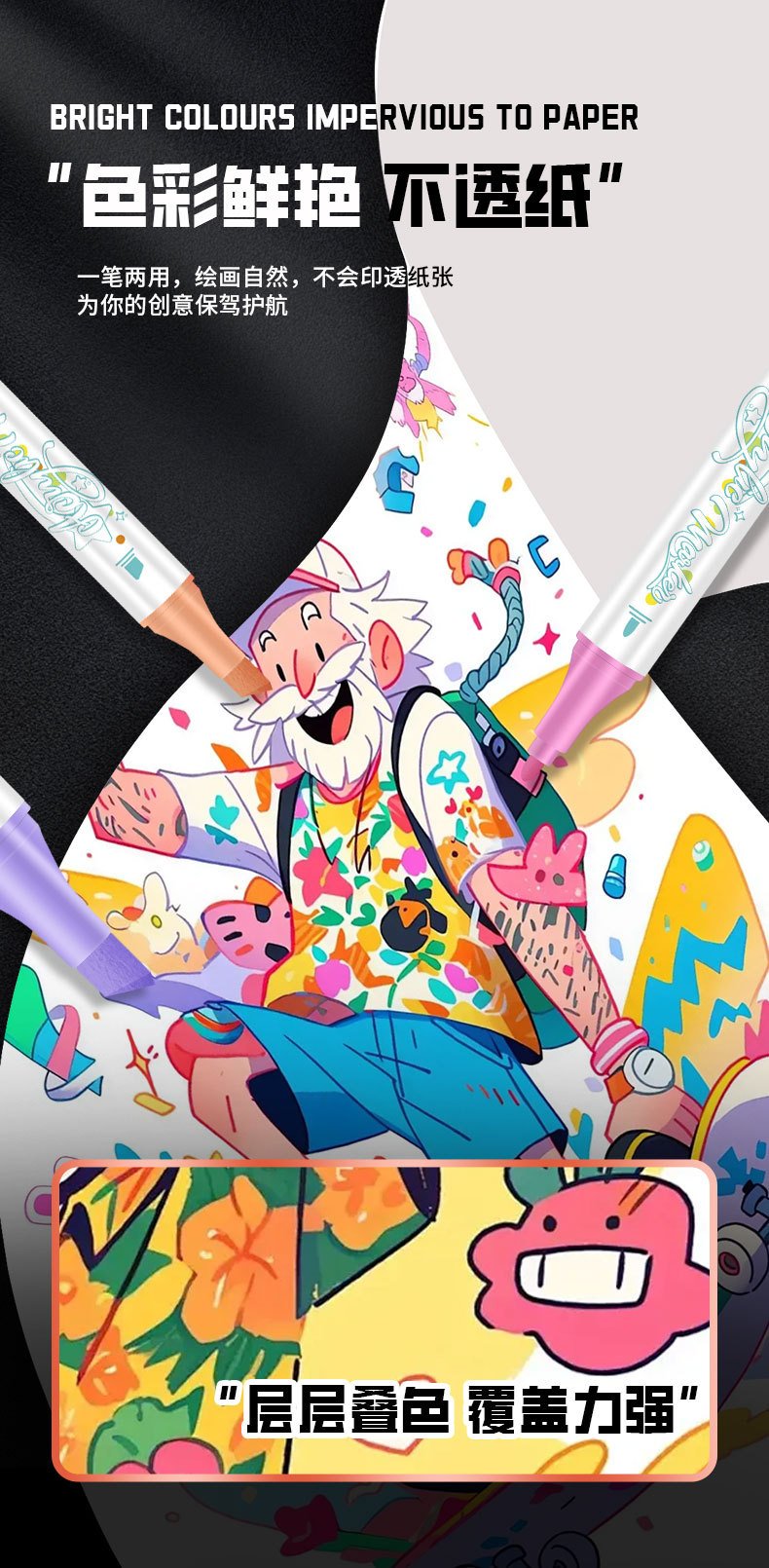 SOMEQI 双頭アクリルマーカーペン デューデューヘッド 学生落書き用 不透明紙積み重ね可能なカラー顔料マーカーペン
