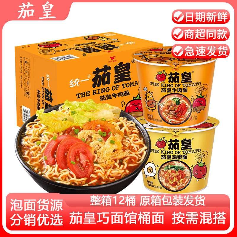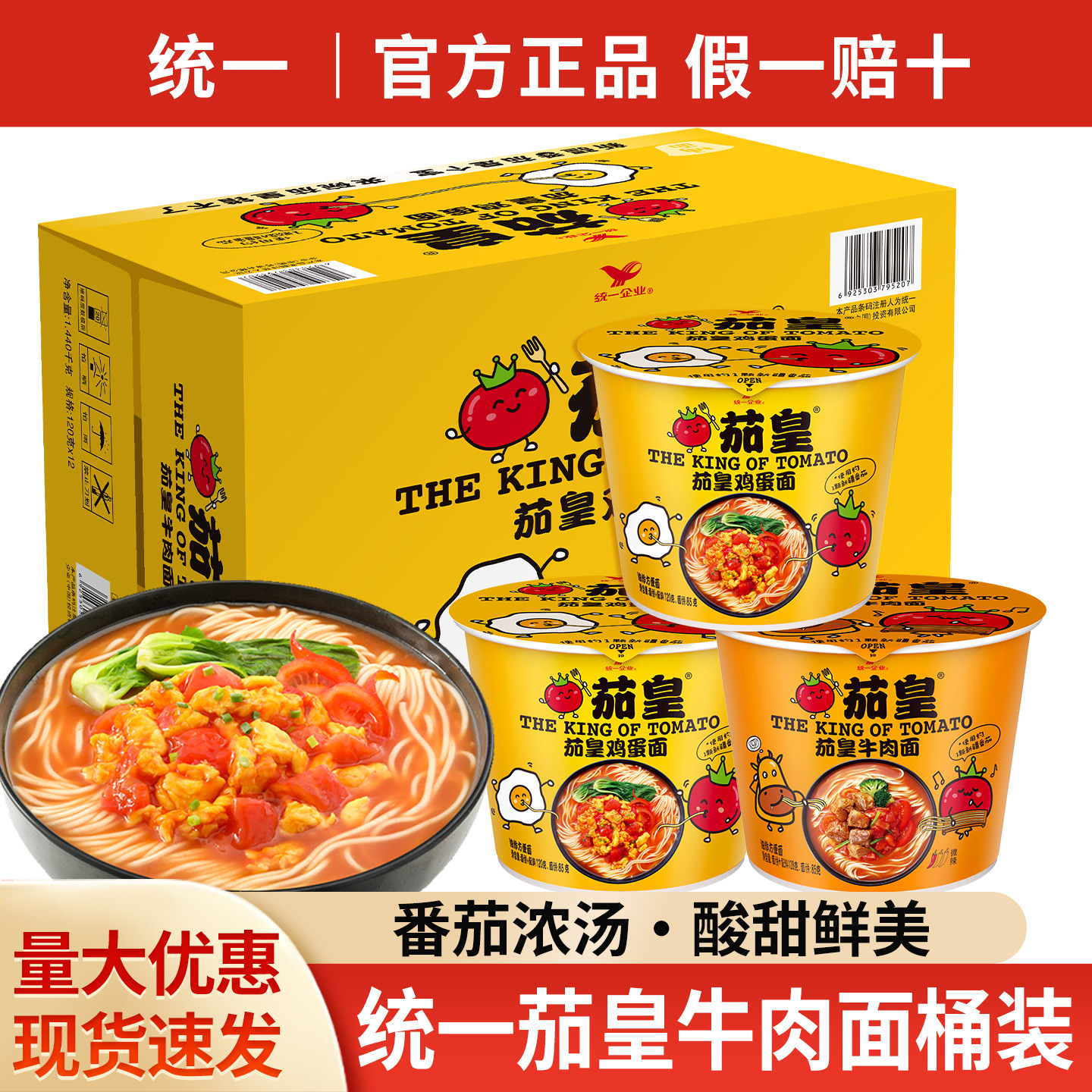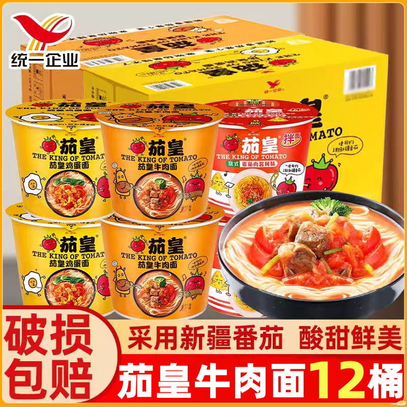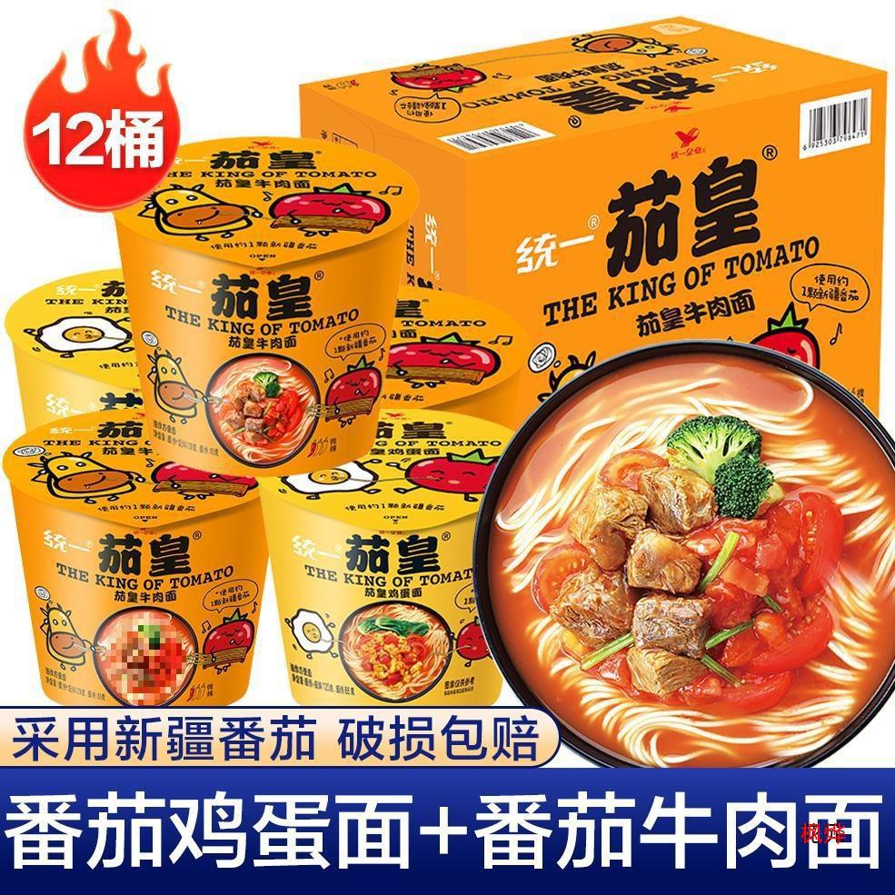 统一茄皇12桶整箱装新疆番茄鸡蛋牛肉面方便面速食夜宵泡面批发