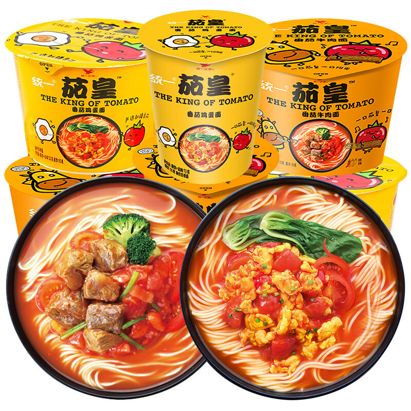 统一茄皇方便面桶装番茄味西红柿鸡蛋牛肉面宵夜方便速食泡面批发