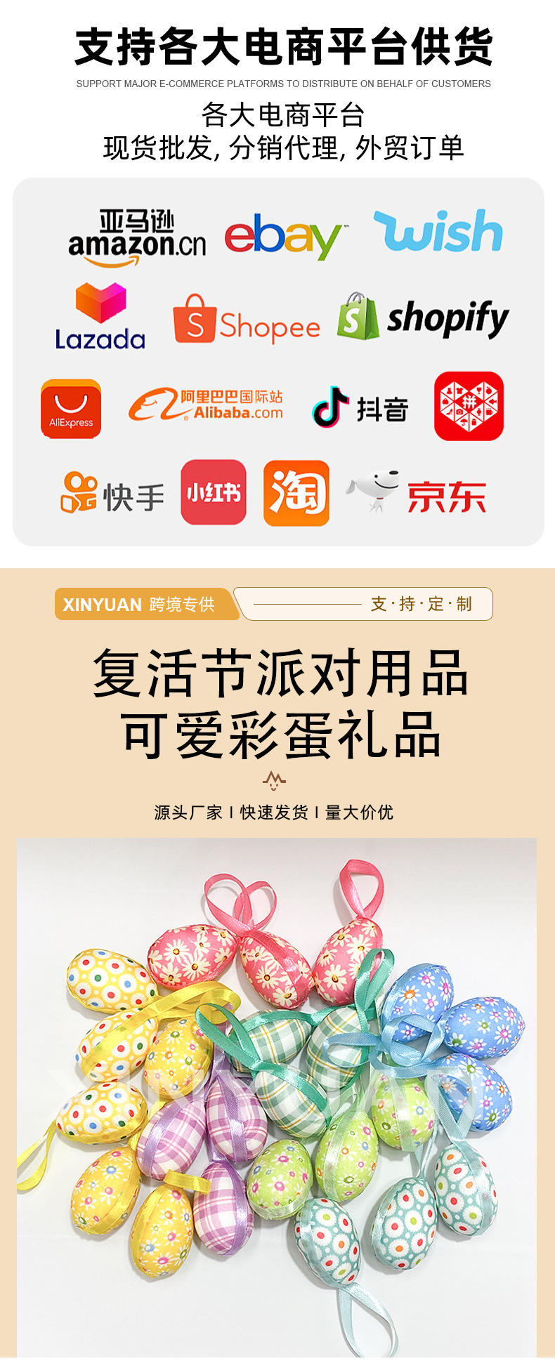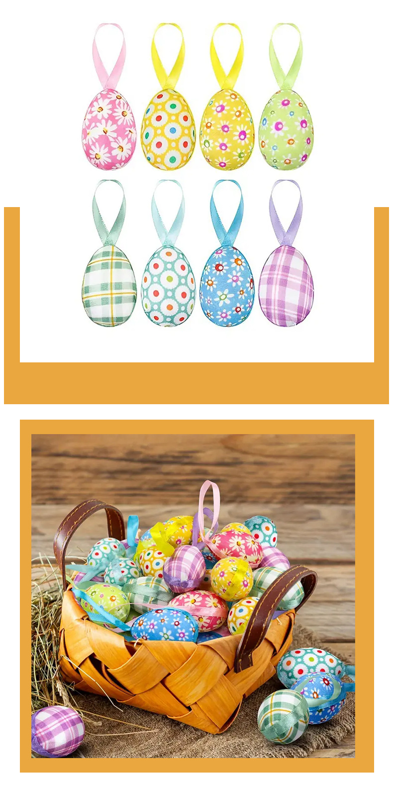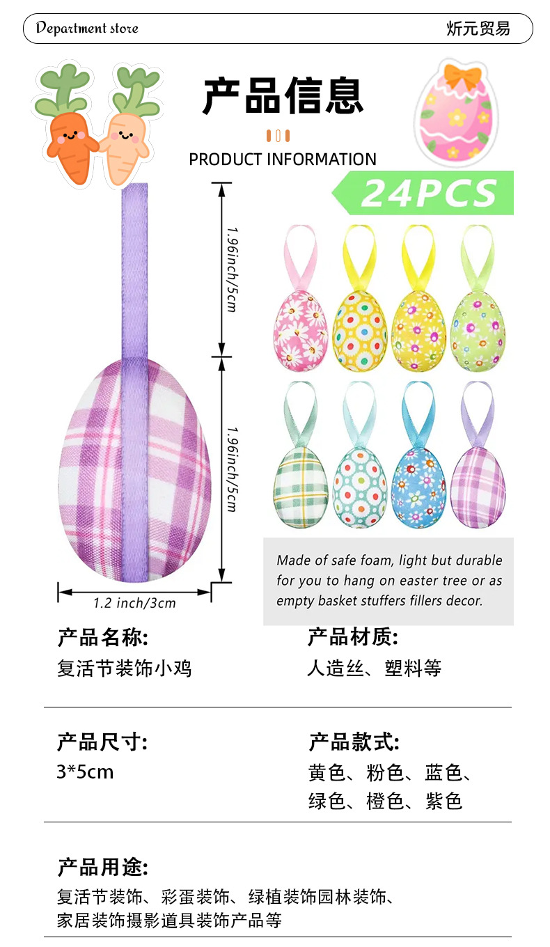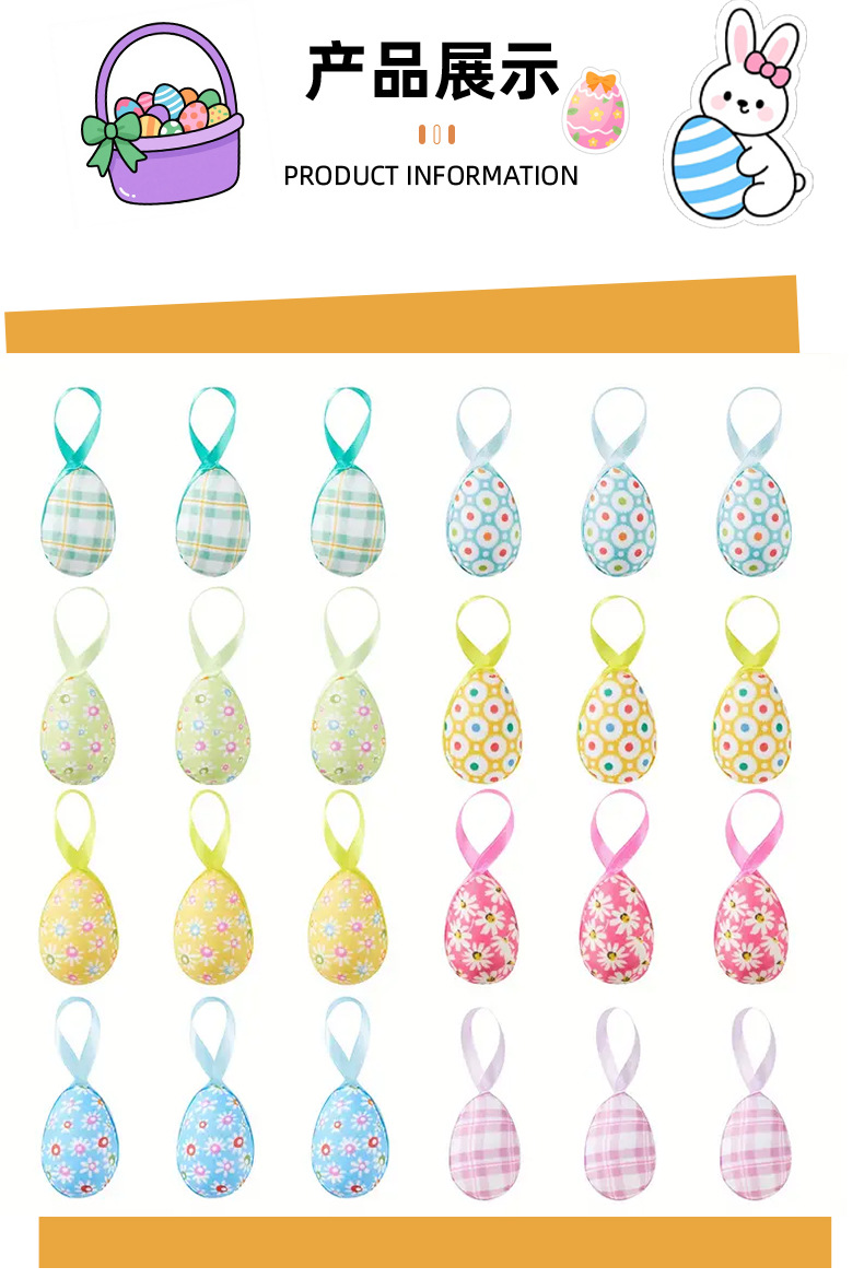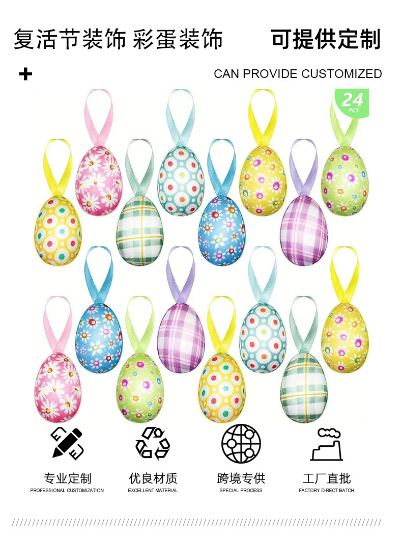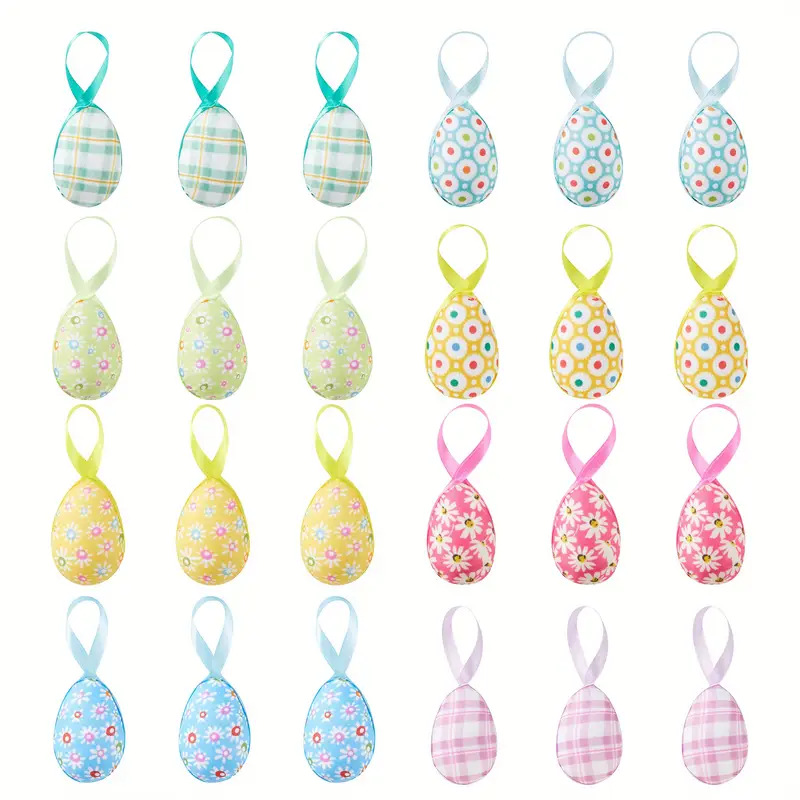 跨境复活节彩蛋挂饰碎花格纹彩蛋装饰派对节日创意布置配饰挂件