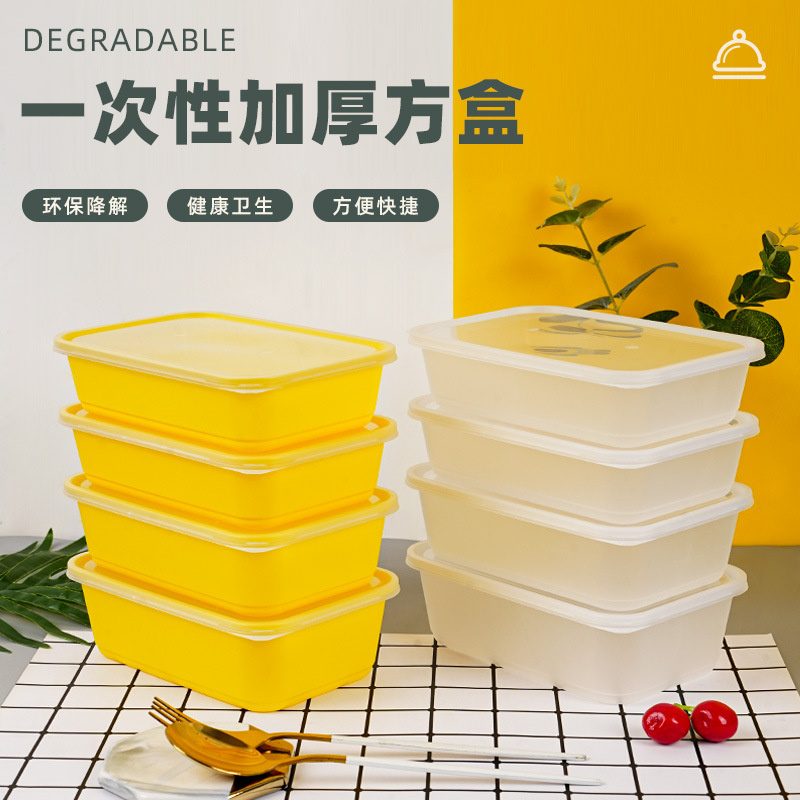 使い捨てテイクアウトファーストフードボックス、生分解性長方形の厚みのあるPPプラスチック包装箱、印刷可能なランチボックスの1枚から