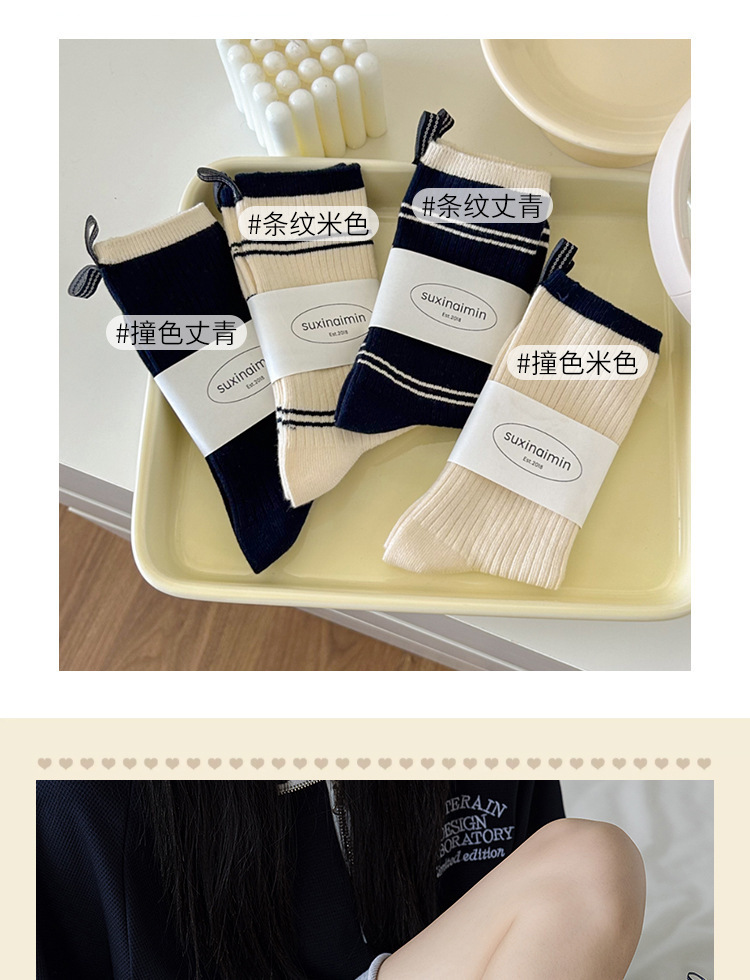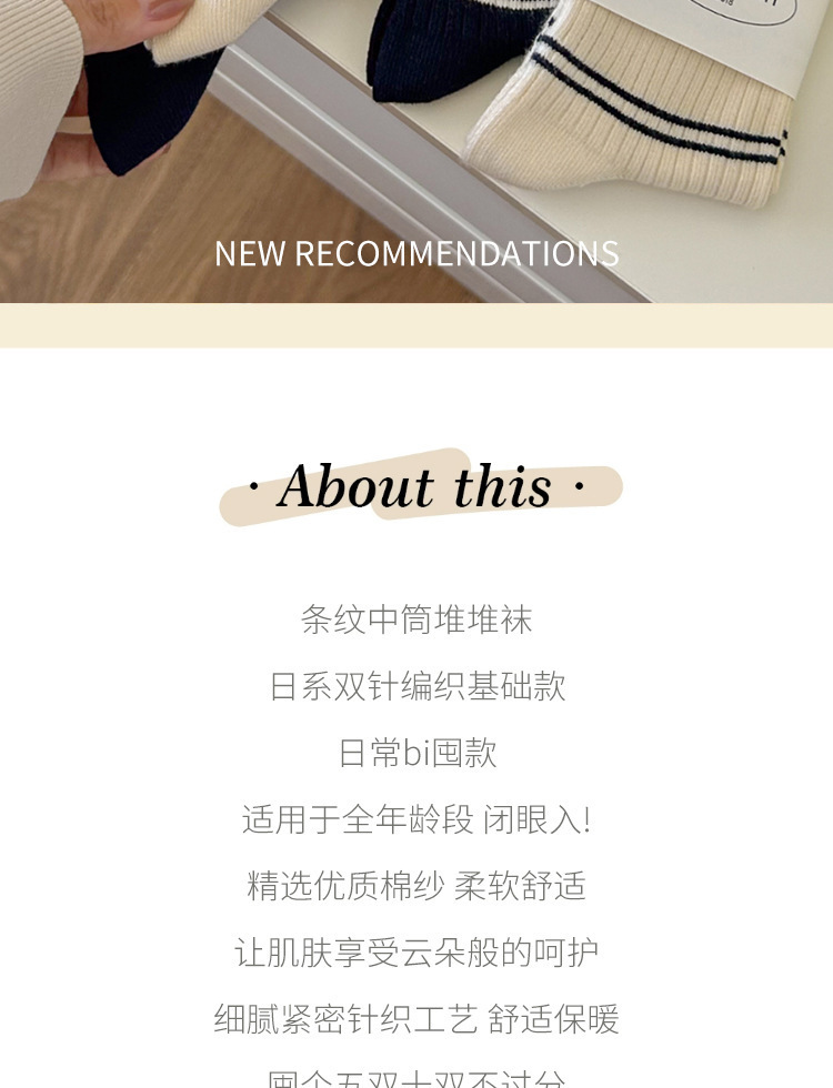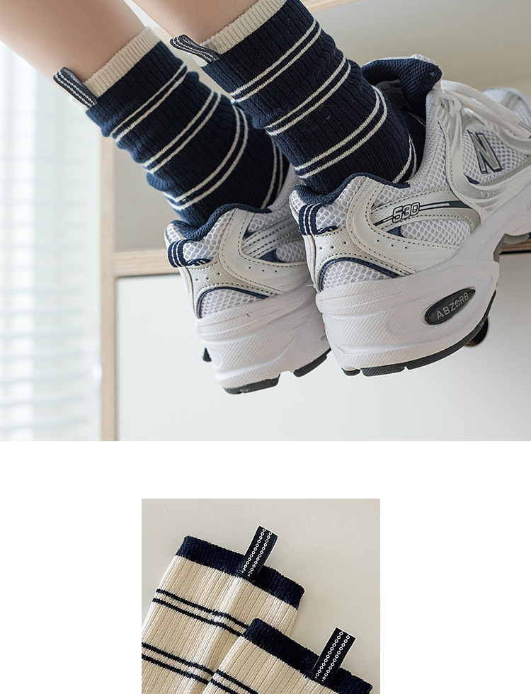 袜子女秋冬中筒袜双针条纹木耳边学院风堆堆袜蓝灰系长袜配小皮鞋