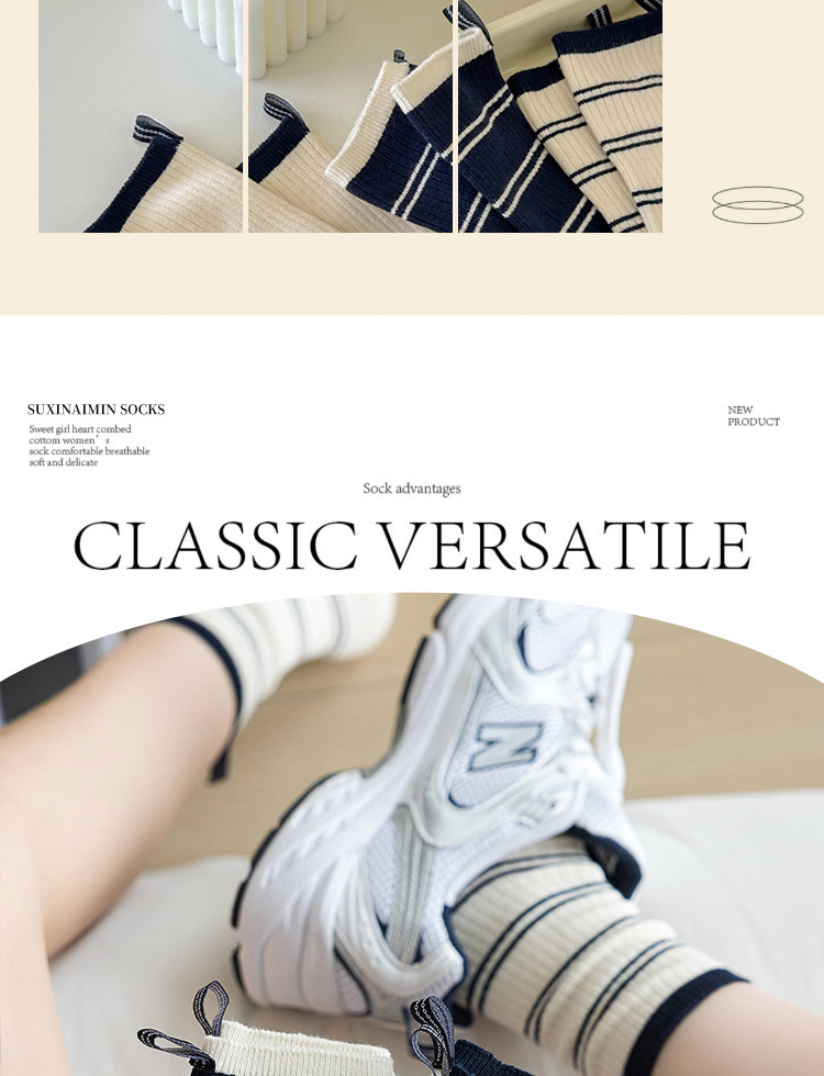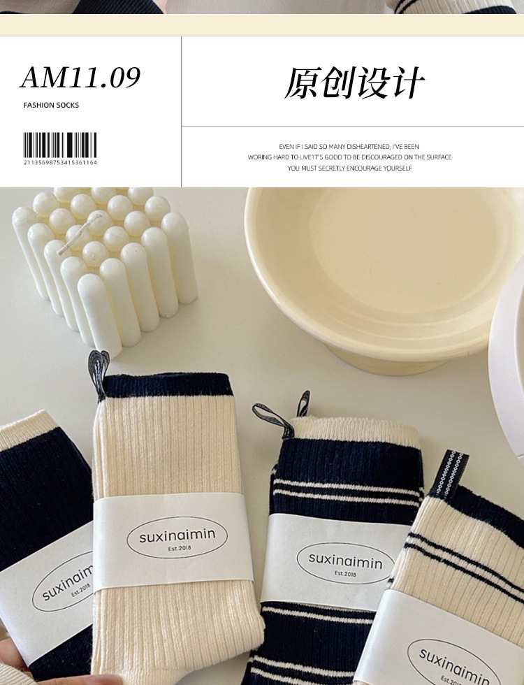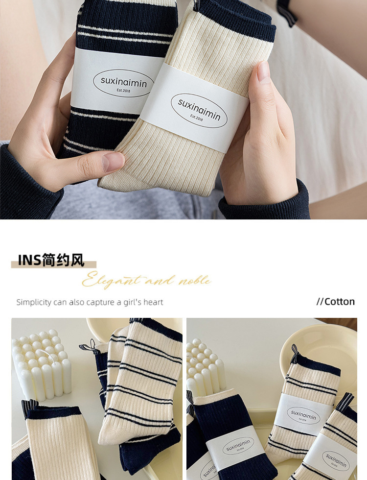 Iu系風双螺口縞靴下子供の中筒靴下ins潮春秋綿靴下日系布標金スタッキングソックス