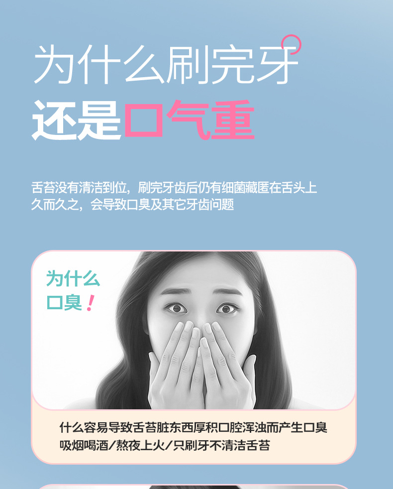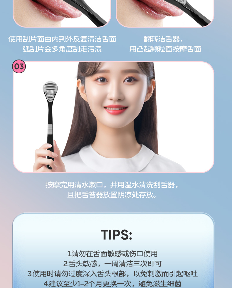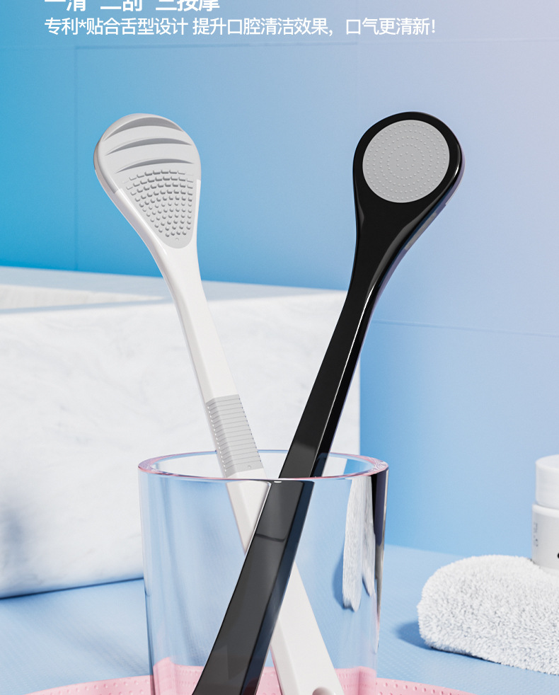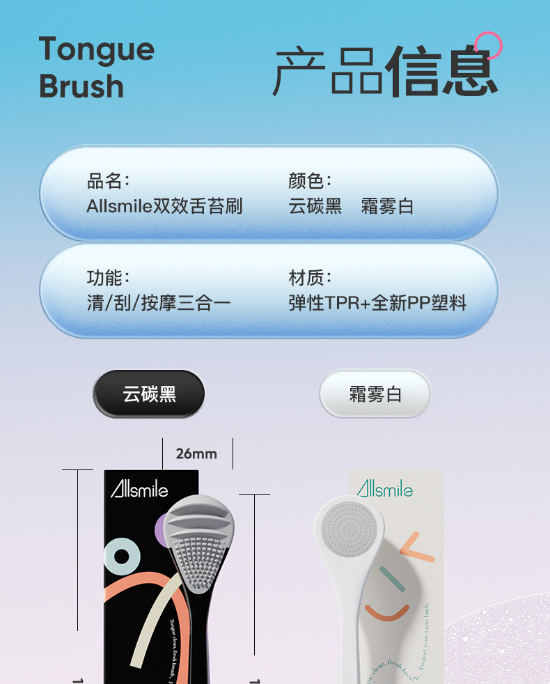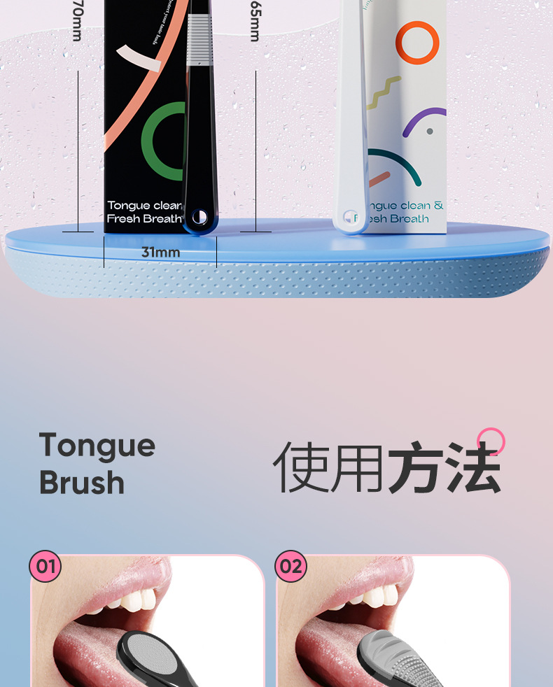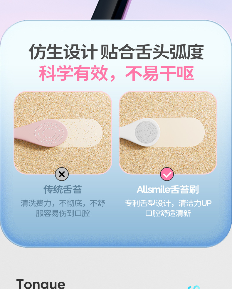 Allsmileは舌の苔を剃ります。クリーナーは舌をきれいにします。