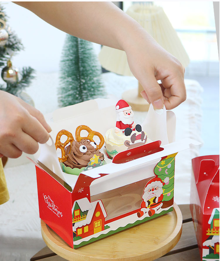 クリスマス紙コップケーキ箱カップケーキ包装箱馬芬杯包装箱2/4/6粒手提げ箱