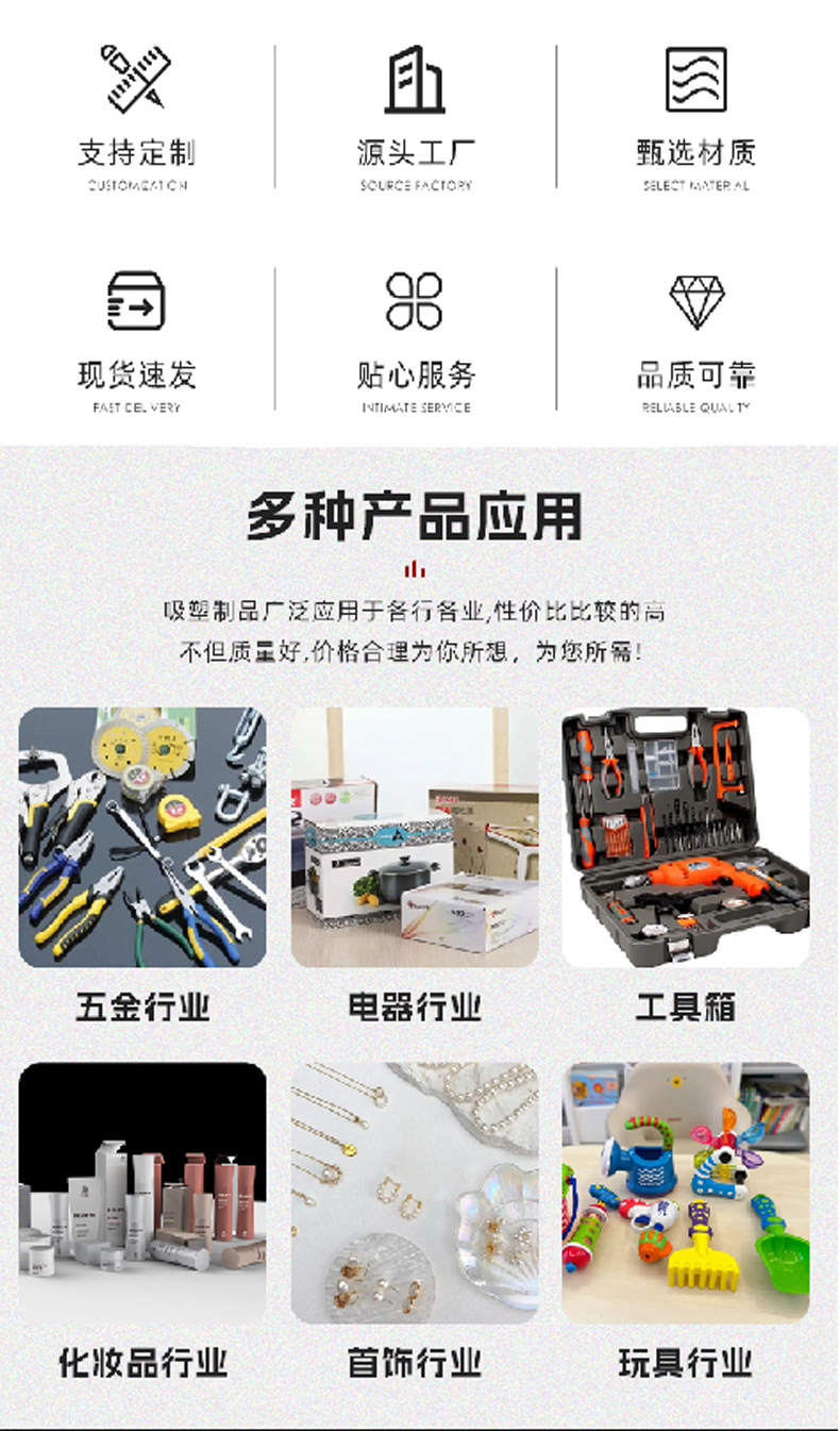 吸塑包装盒PVC透明泡壳吸塑托盘PET防静电电子元件五金包装塑料盒