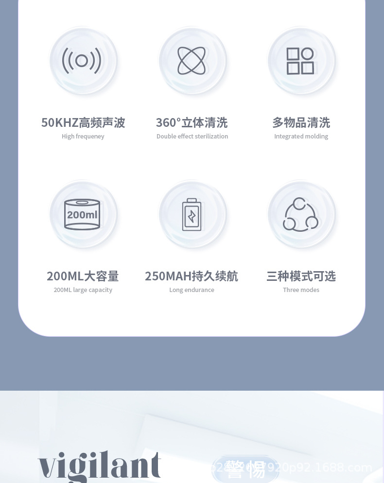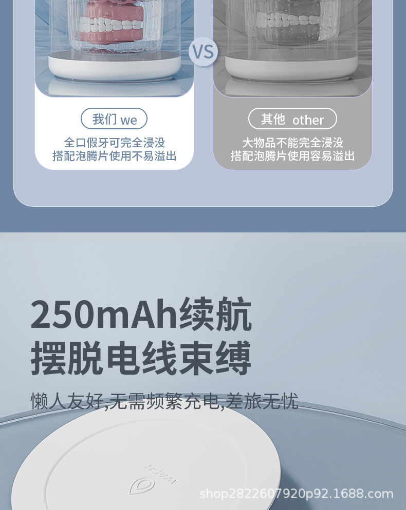 跨境超声波假牙清洗机UV灭菌家用充电式牙套清洗机超声波清洁器