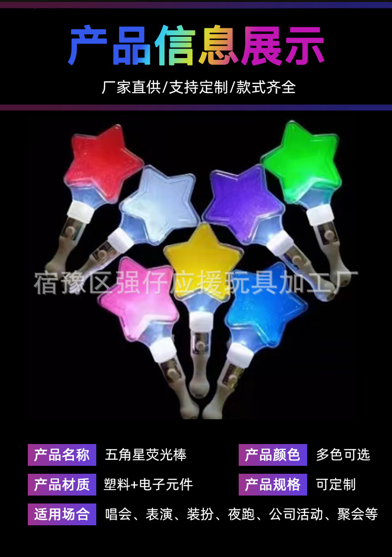 厂家星星荧光棒批发演唱会助威道具七彩五角星应援棒闪光手灯明星