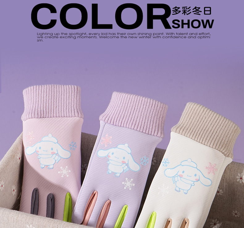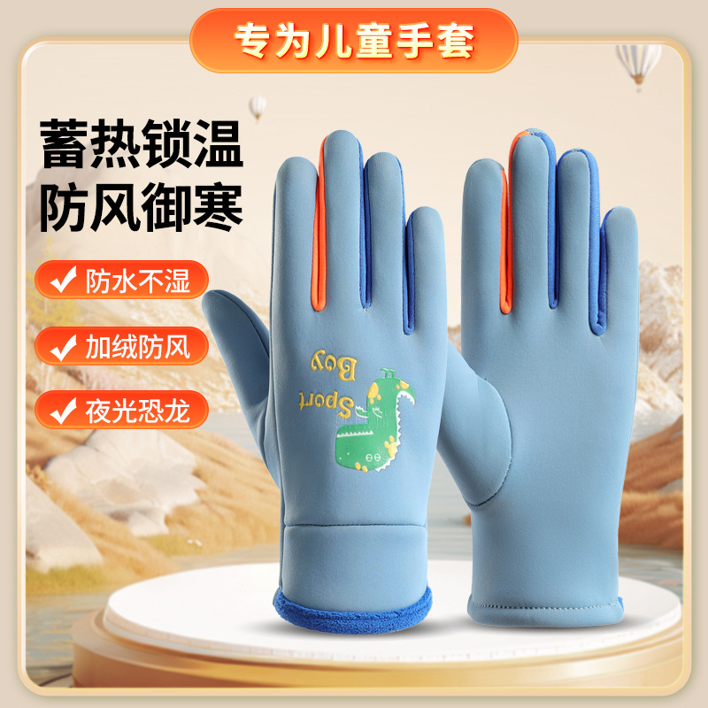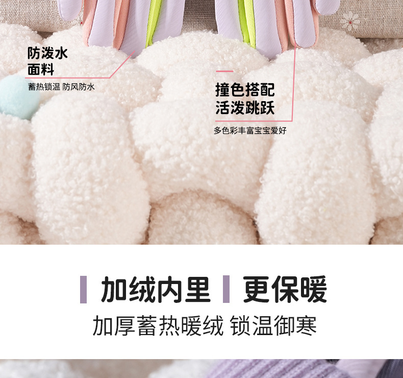 子供用手袋男女冬ベルベット保温屋外スキー自転車遊び滑り止め防水かわいい羅口五本指