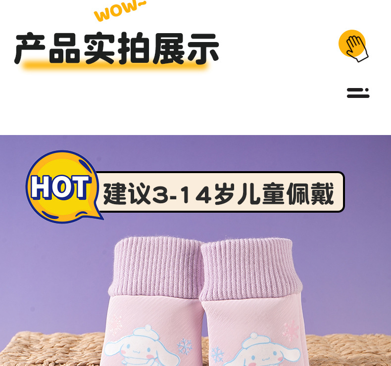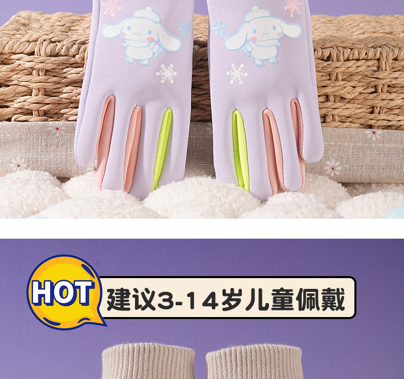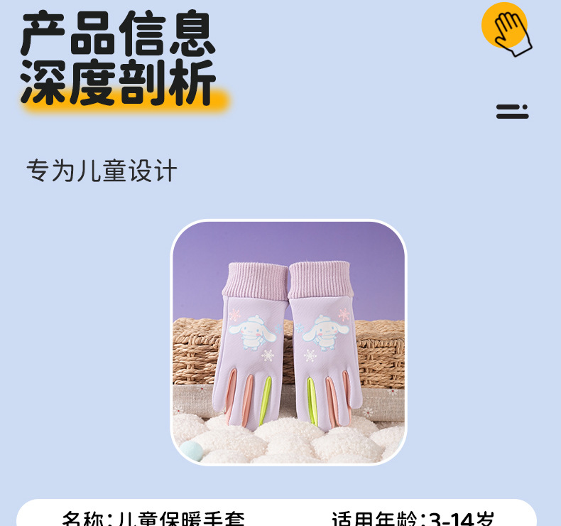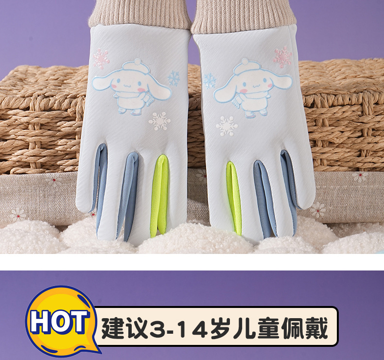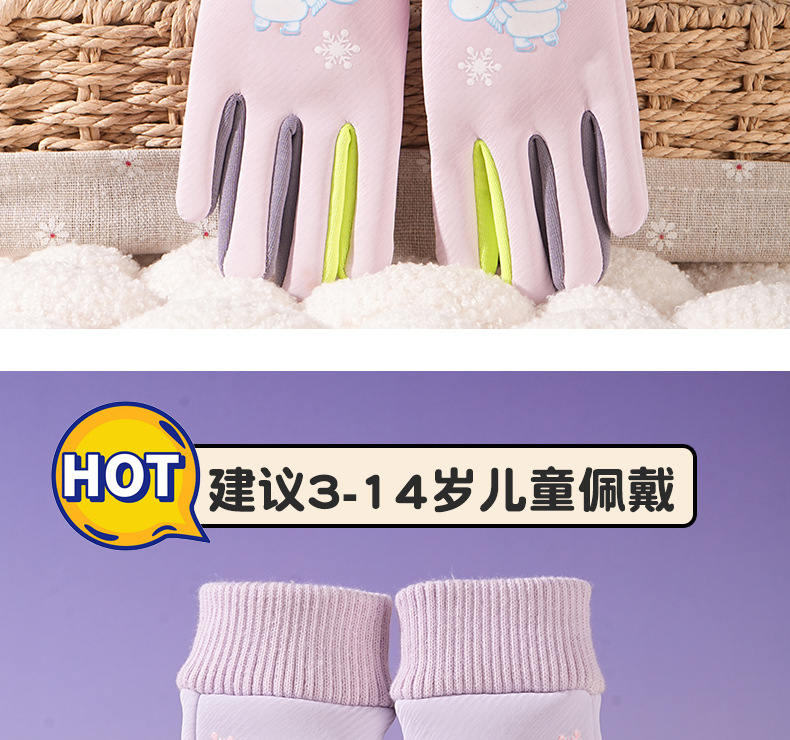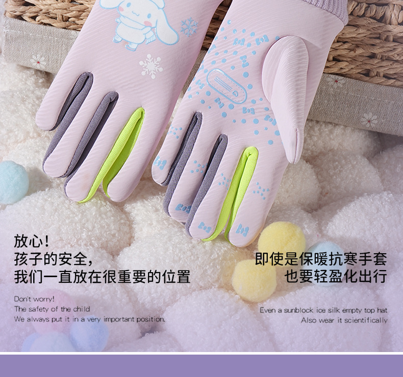 儿童手套冬季可爱卡通加绒加厚保暖男女童户外骑车防风防水滑雪