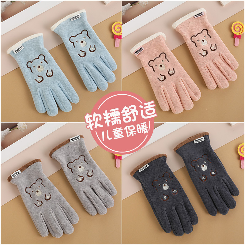 秋冬款加绒保暖奥粒绒户外骑行运动防风防寒可爱男女儿童五指手套