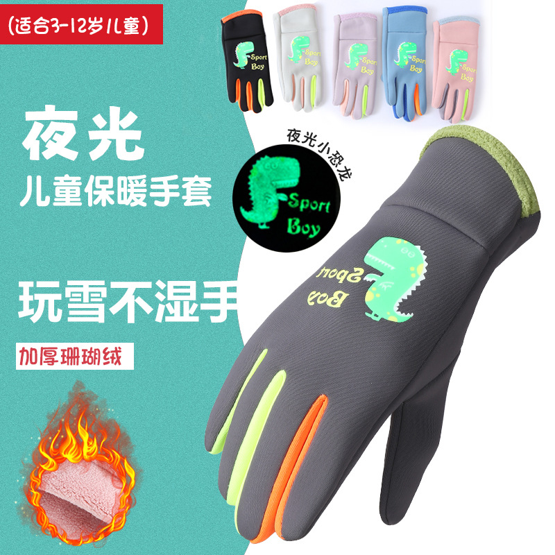 子供用手袋アニメ夜光アウトドアスポーツ保温冬雪防風防水小学生手袋男女子供