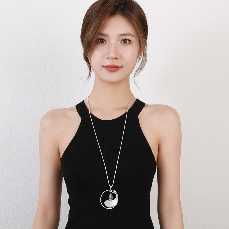 国境を越えたアマゾンの爆金女性合金水滴長型女性ins風宝飾品復古シンプルペンダントセーターチェーン