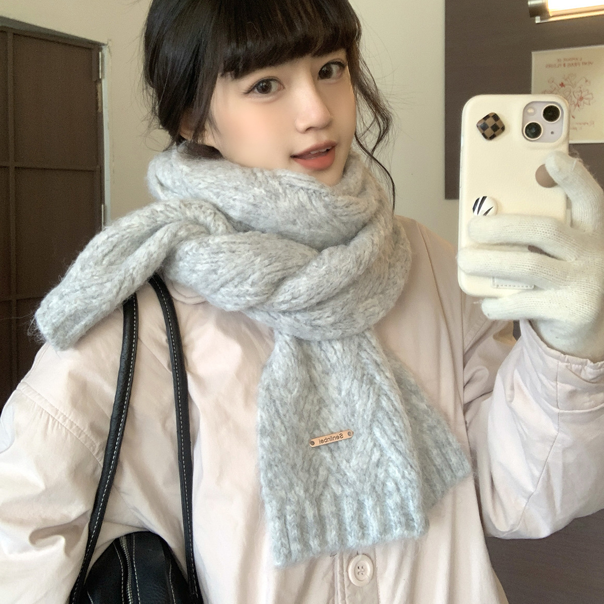 アルバカ羊の毛糸スカーフ レディース 冬新作 ウール混紡スカーフ 韓国風ニットスカーフ