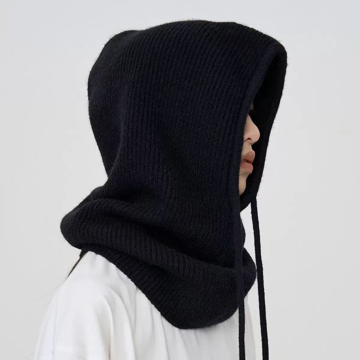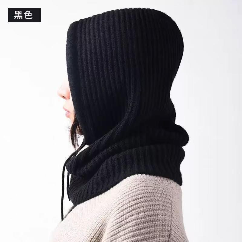 跨境羊毛混纺时尚披肩帽一体巴拉克拉法帽针织帽保暖围巾