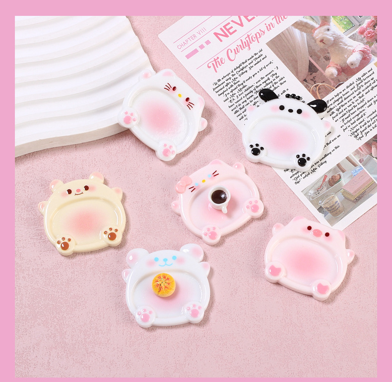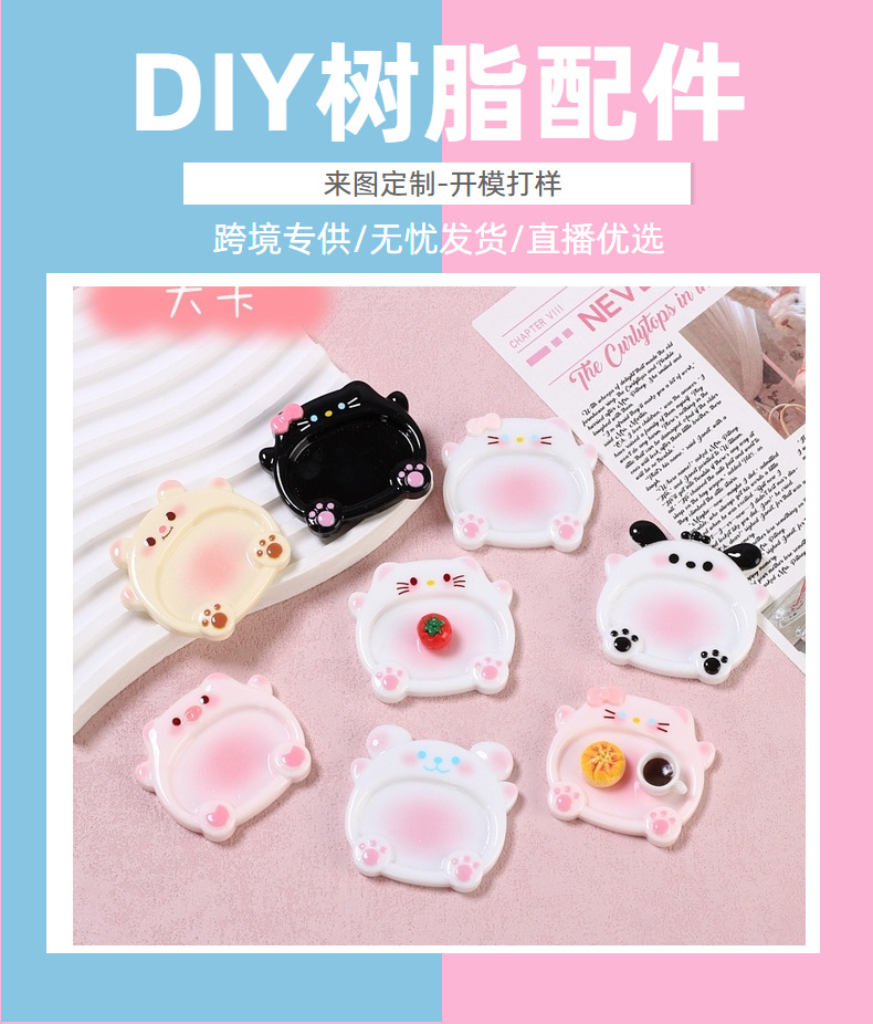 可爱动物花边盘子创意手工diy奶油胶树脂配饰小配件饰品材料批发