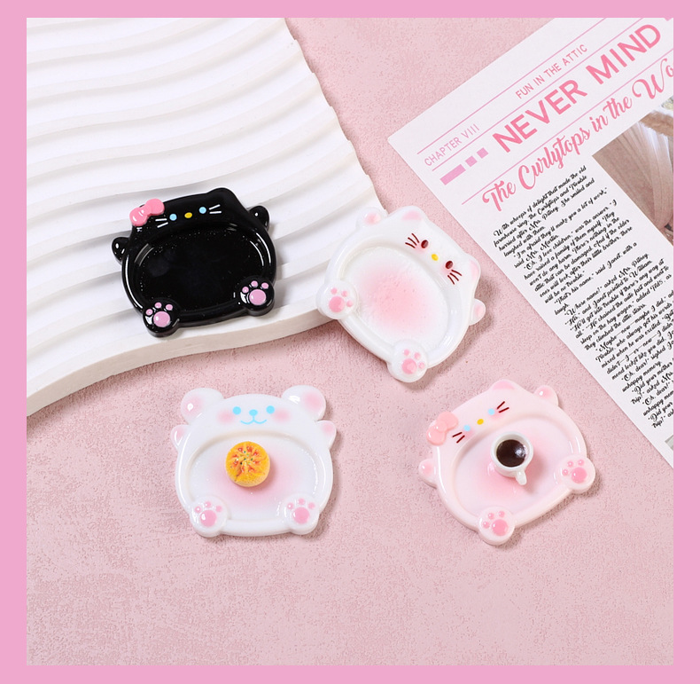 かわいい動物の皿のアイデアdiyクリームの携帯のケースの髪飾りのヘアピンのアクセサリーの樹脂の部品の卸売り