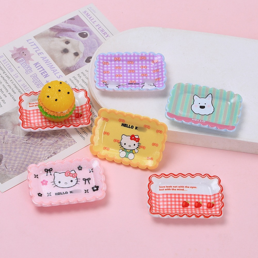 创意食玩格纹盘子卡通手工diy奶油胶树脂配饰小配件饰品材料批发