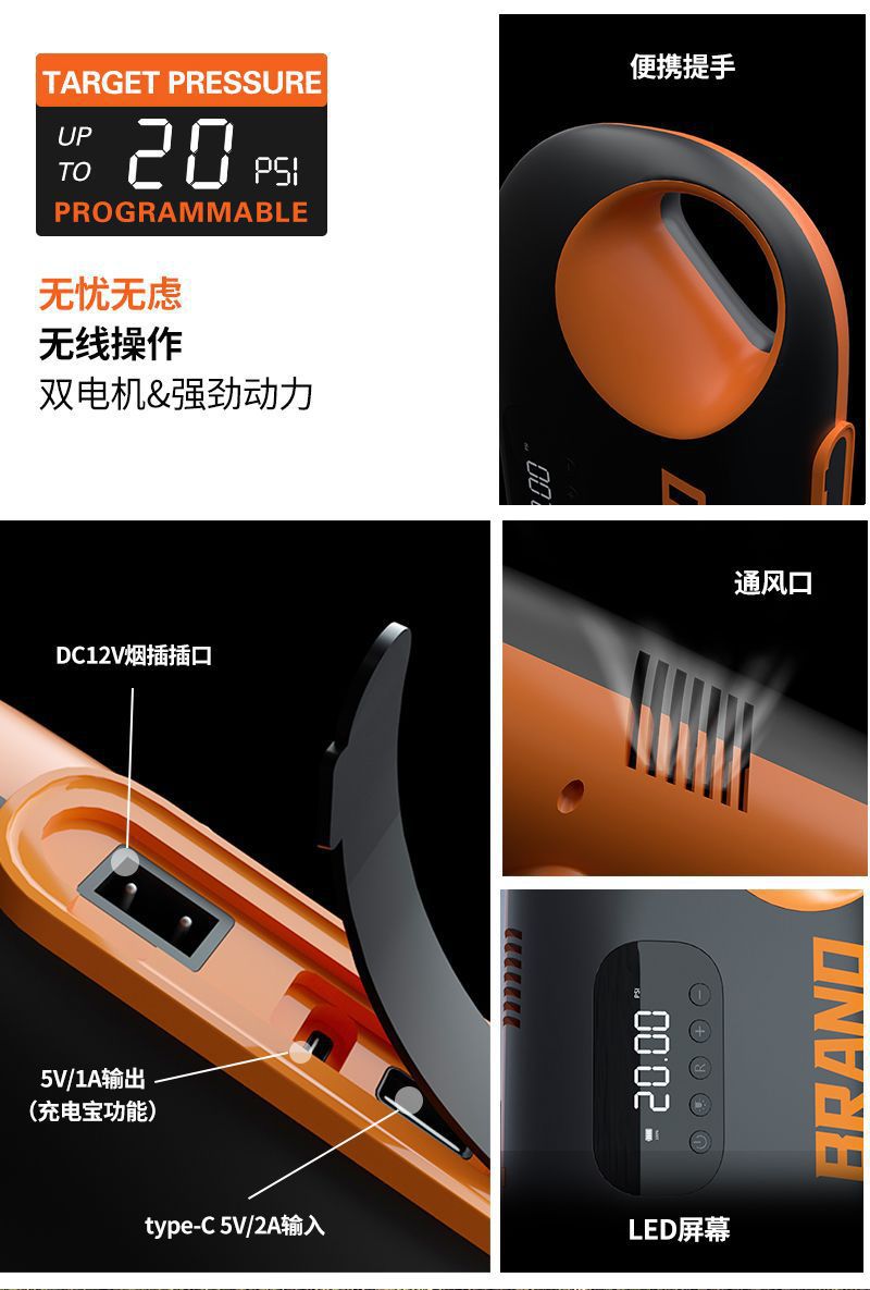 車載ポータブル屋外キャンプテントSUPカヤックハイパワースマートワイヤレス高圧電動エアポンプ